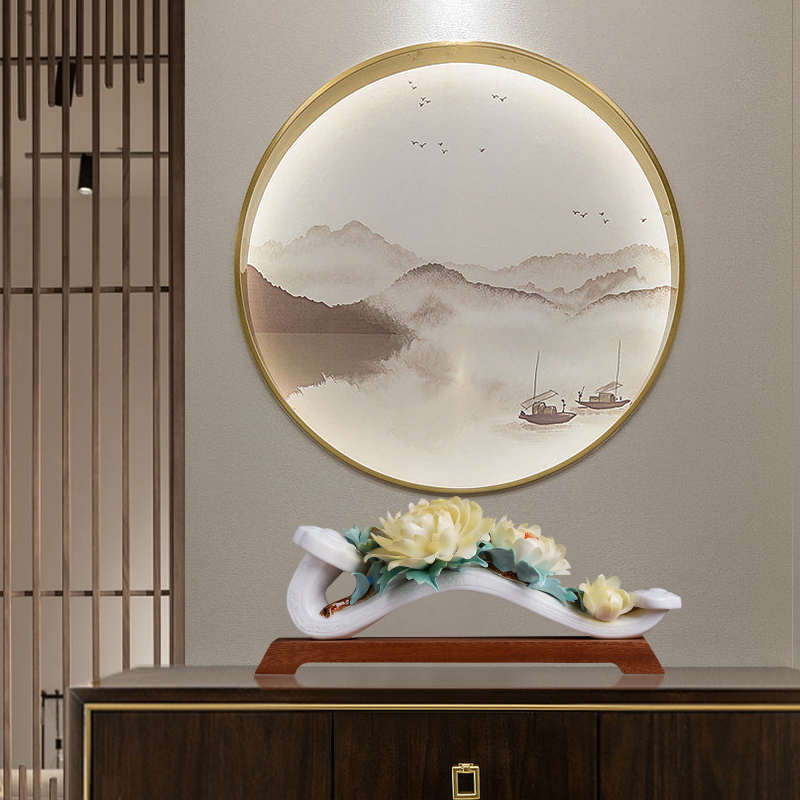 陶瓷如意摆件牡丹花客厅家居轻奢高档装饰品乔迁搬家开业送礼礼品