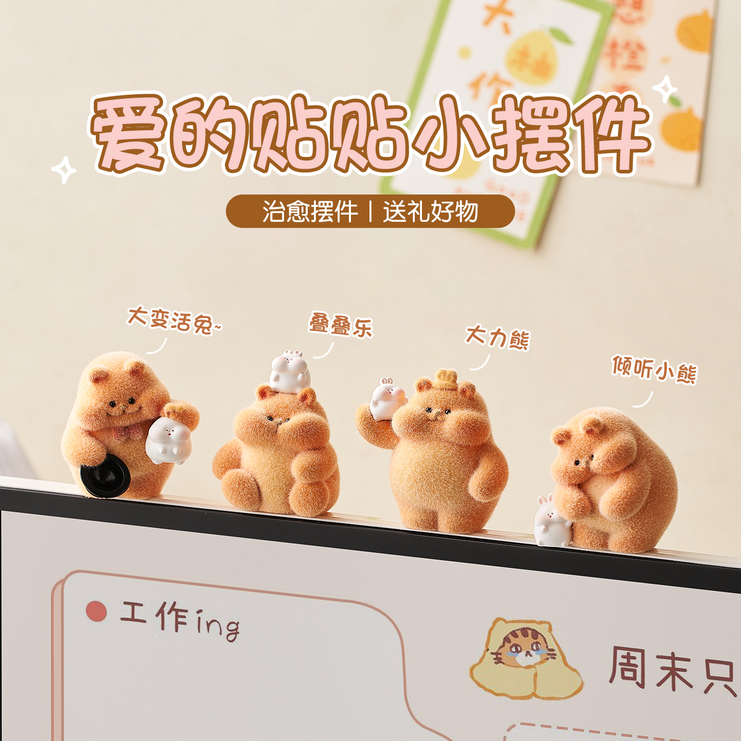 高级感小熊电脑趴趴摆件显示屏幕装饰品办公室桌面工位可爱治愈系