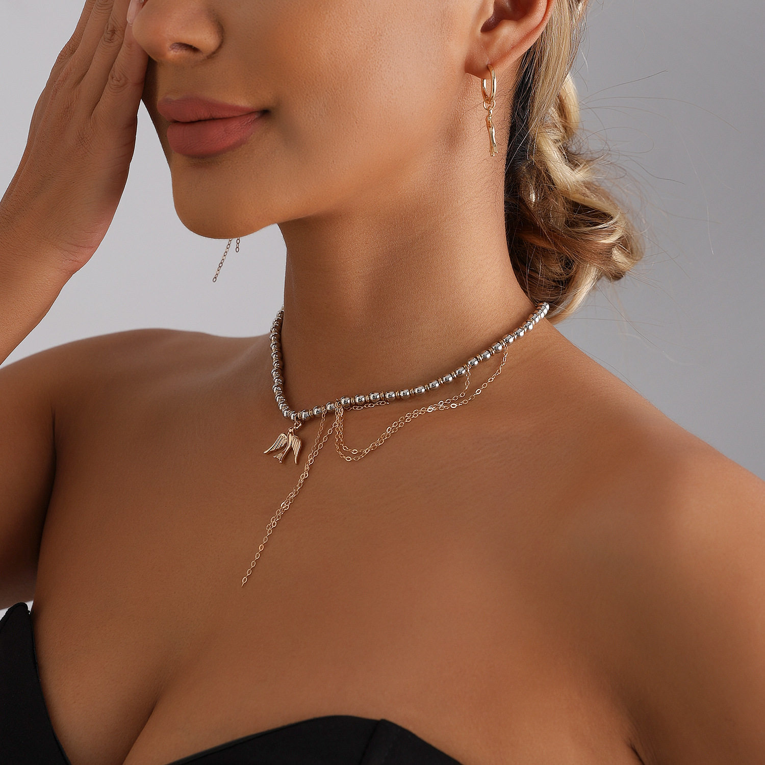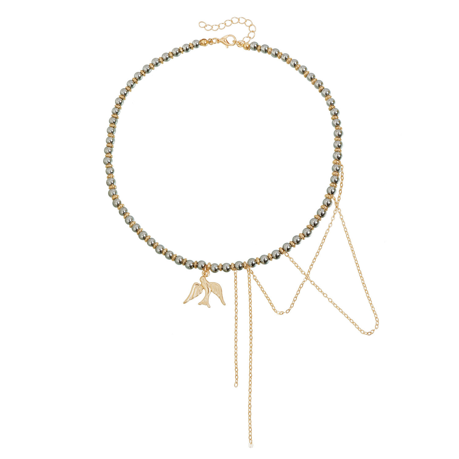 欧美饰品几何混色个性CCB串珠飞鸟流苏项链女ins个性创意锁骨链