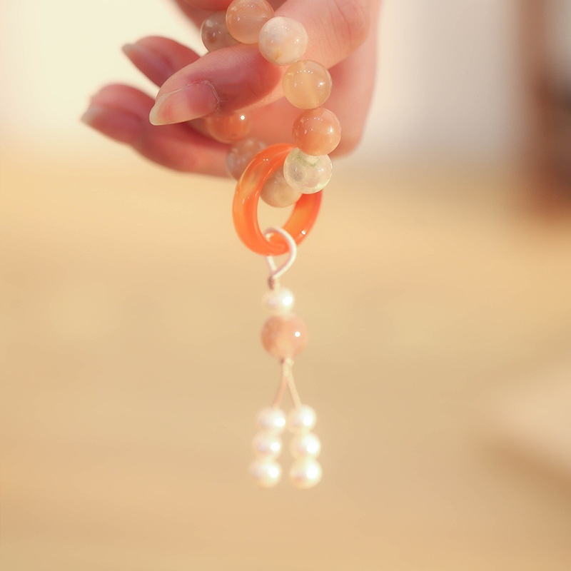 饰品绕指柔天然樱花玛瑙手捻女阿呆珍珠吊坠古风配饰手持手串