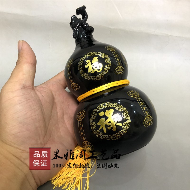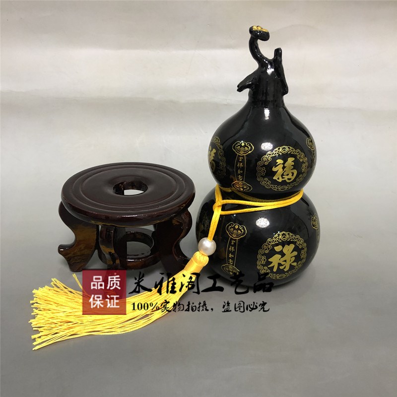 葫芦摆件玄关玉石家居装饰工艺品博古架中K式禅意黑曜石福禄保平