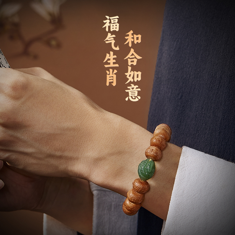 凤眼菩提手串男十二生肖和田玉原籽黄皮文玩佛珠算盘珠手链女