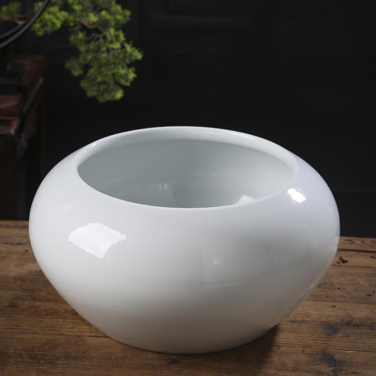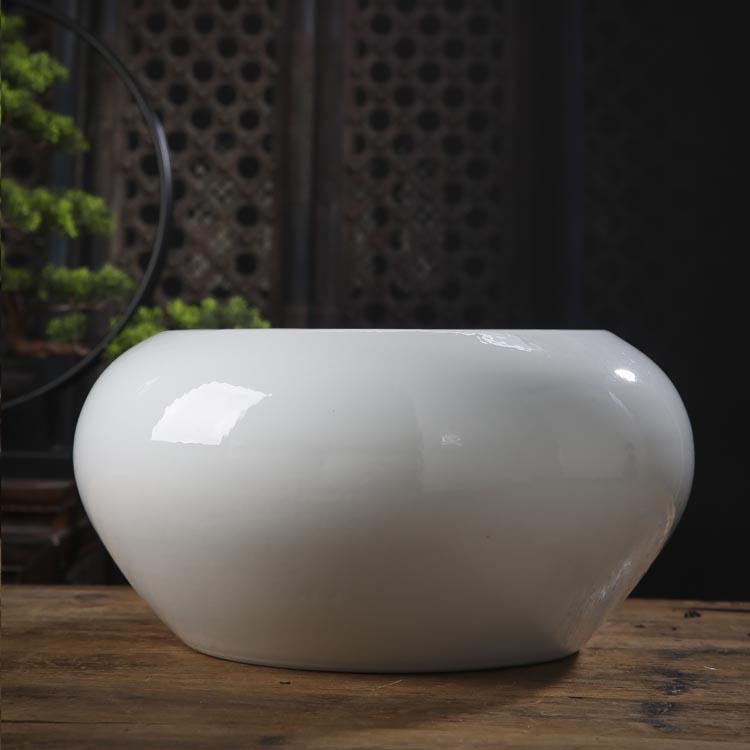 景德镇陶瓷摆件聚宝盆瓷器桌面鱼缸小型纯色手工白胎缸鱼盆现代