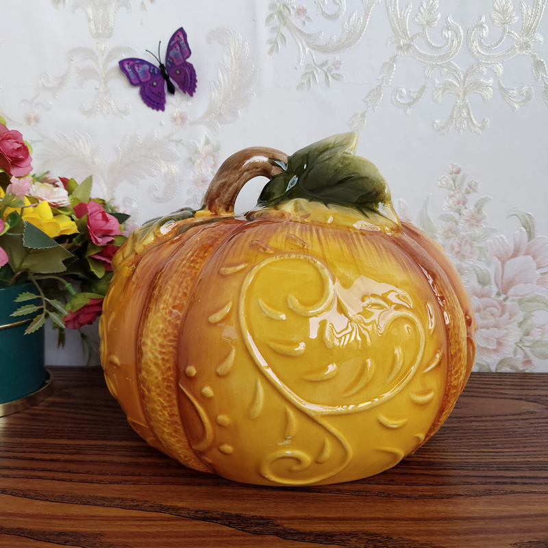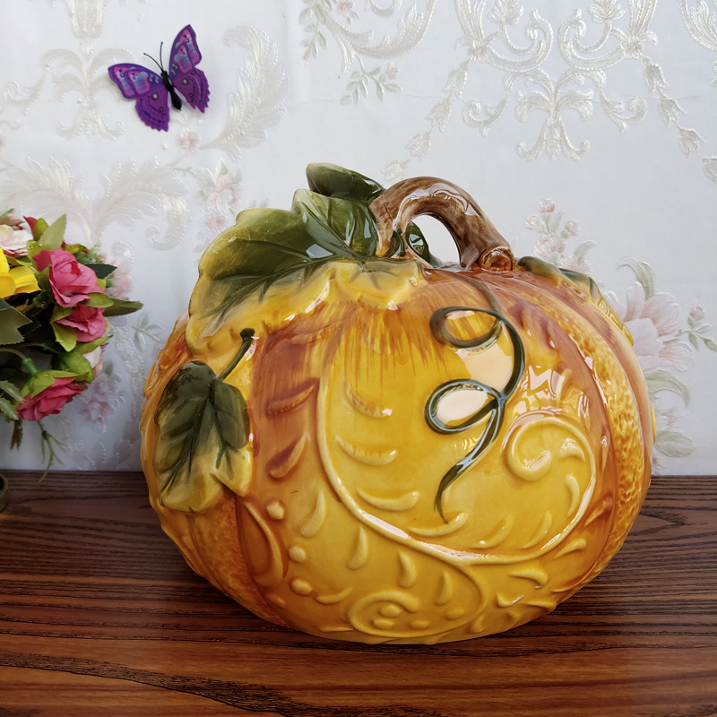 特价清仓纯手绘陶瓷成熟南瓜摆件复古风家居装饰品桌面招财摆设