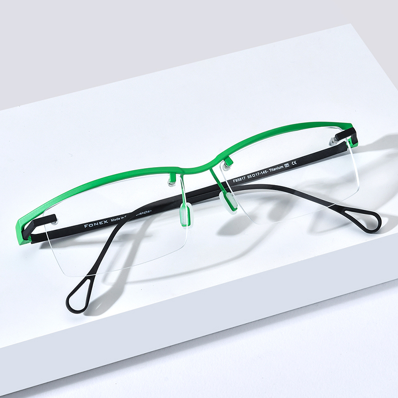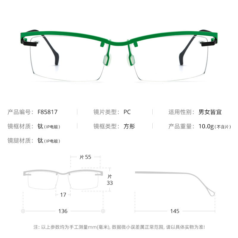 超轻纯钛方形眼镜框架男款日系奥山商务半框近视光学眼睛可配度数