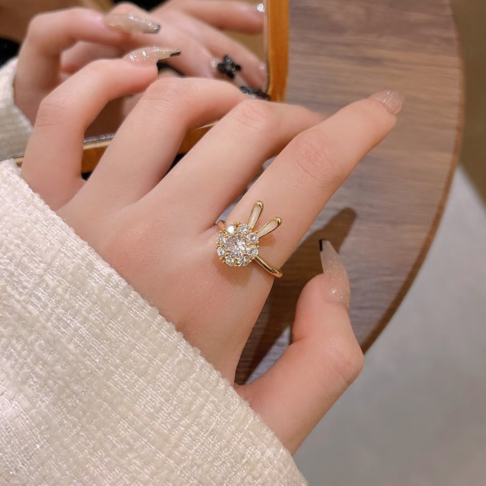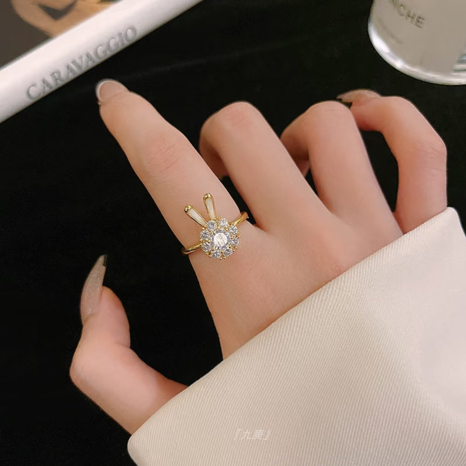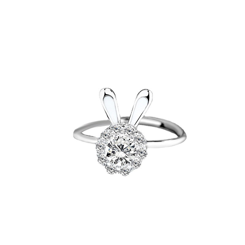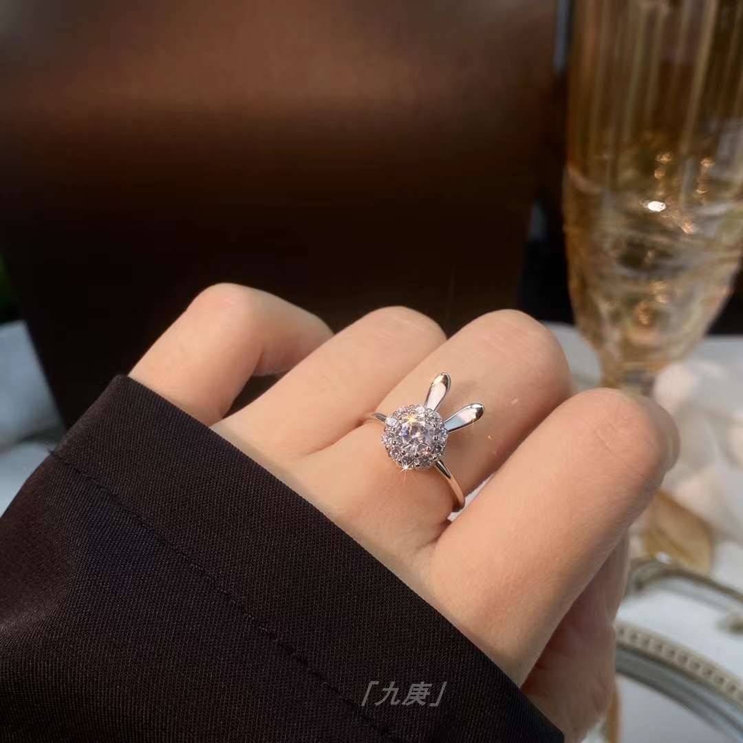 2025年爆款纯银滴机械萌兔戒中央钻可旋转开口可调节轻盈无感新款