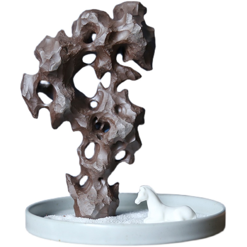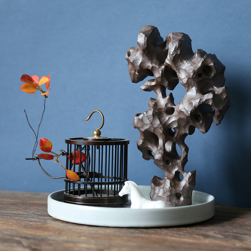 新中式侘寂风禅意陶瓷太湖石摆件书房茶几桌面书柜样板房软装饰品