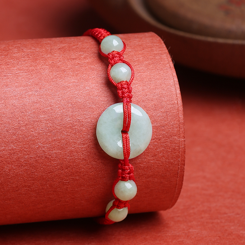 普陀山旗舰店天然翡翠平安扣手绳女本命年平结编织玉红绳手链饰品