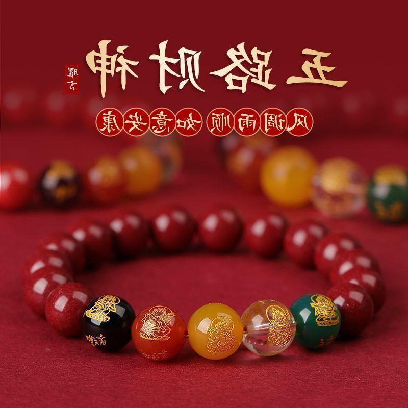 天然紫金女士五路财神砂手炼手串紫金转运本命年情侣男士砂礼物