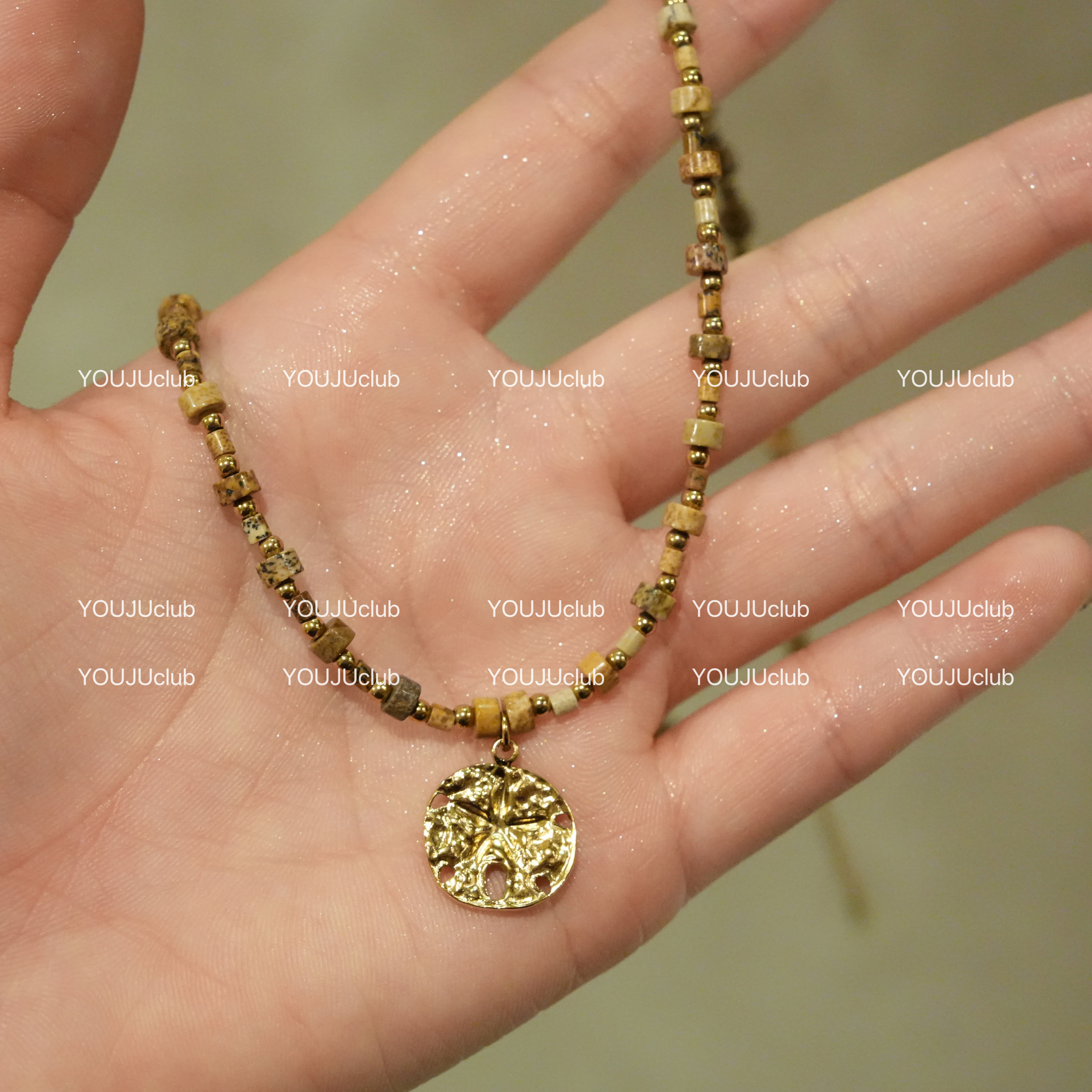 YOUJUclub-轻罗小扇~古典棕色天然石串珠复古名族风项链锁骨链女