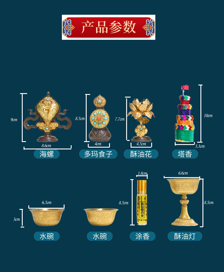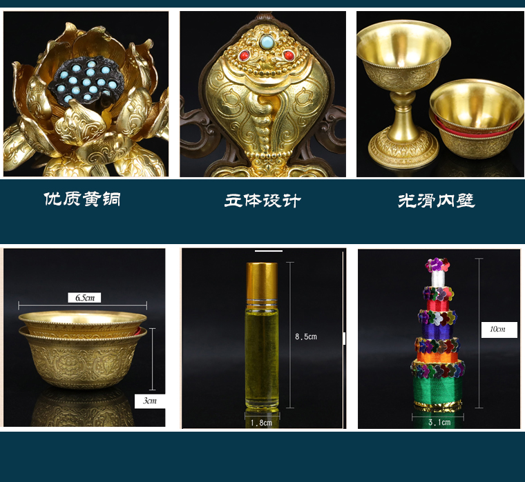 七支供慧宝纯铜八宝摆件搭配不同供水碗八供杯密宗供具佛前铜摆件