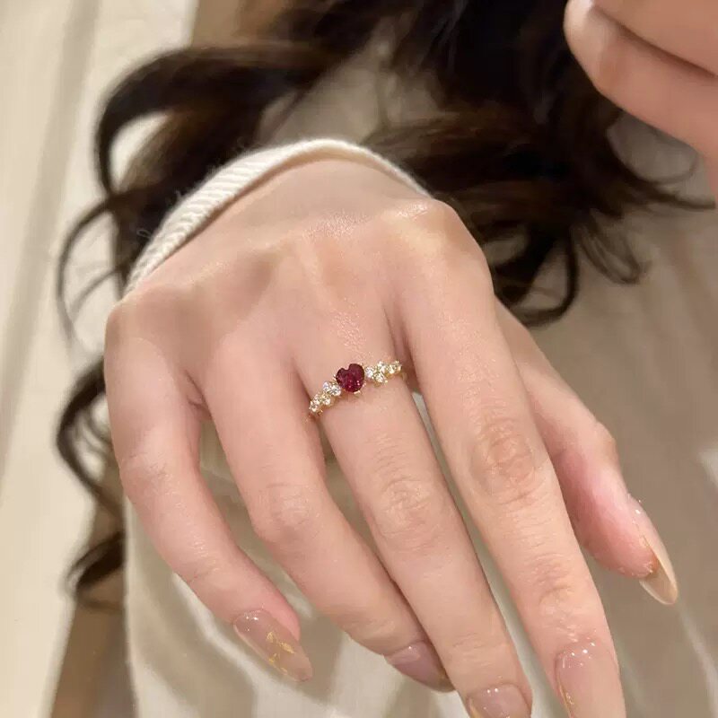 巨好看的红色爱心闪钻戒指法式气质高级感设计小众本命年开口指环