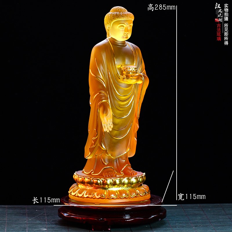 古法琉璃南无阿弥陀佛站立接引佛佛堂供奉庐山东林大佛摆件贴金