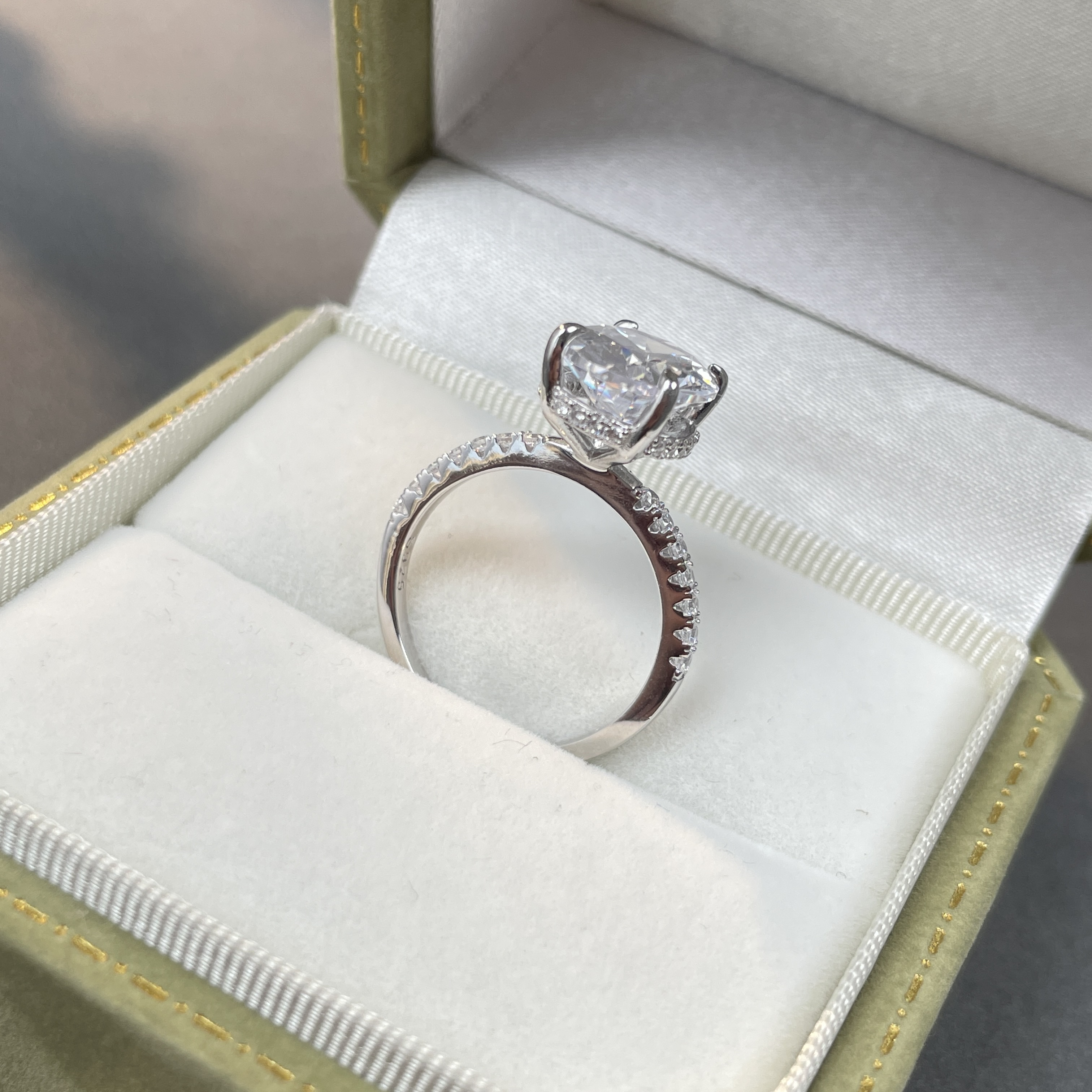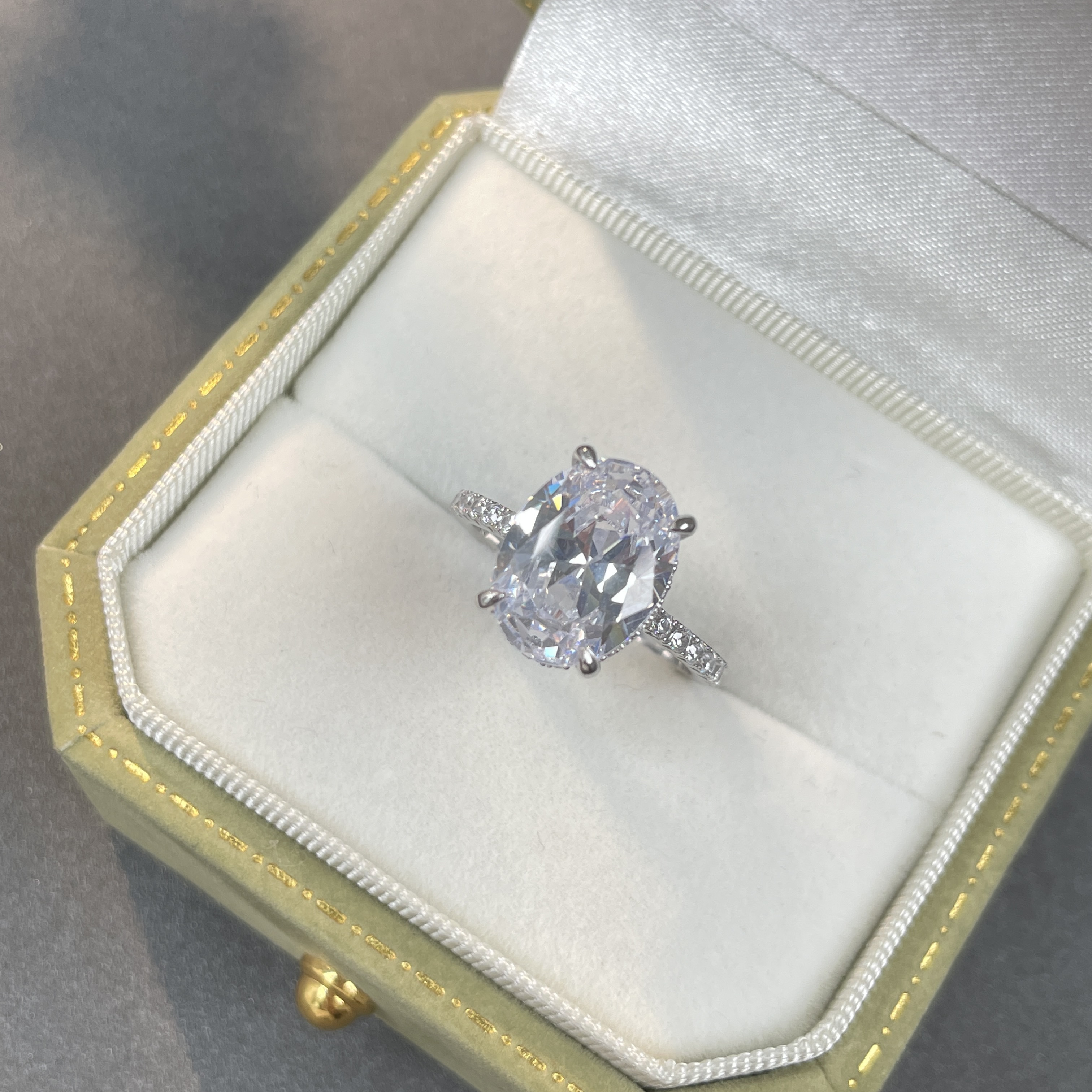 s925纯银进口高碳钻9*12鸽子蛋形求婚钻戒时尚高级感满钻镶嵌戒指