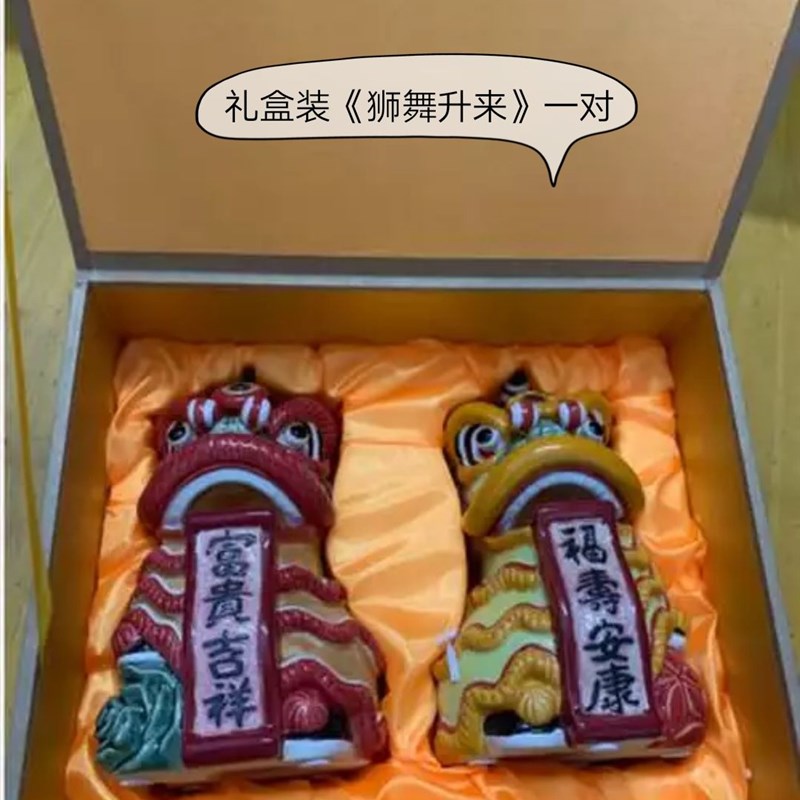 石湾公仔陶瓷醒狮摆件家居客厅办公桌面舞狮装饰品开业乔迁送礼物