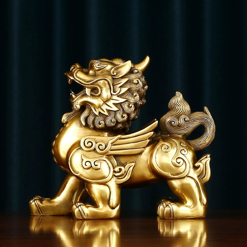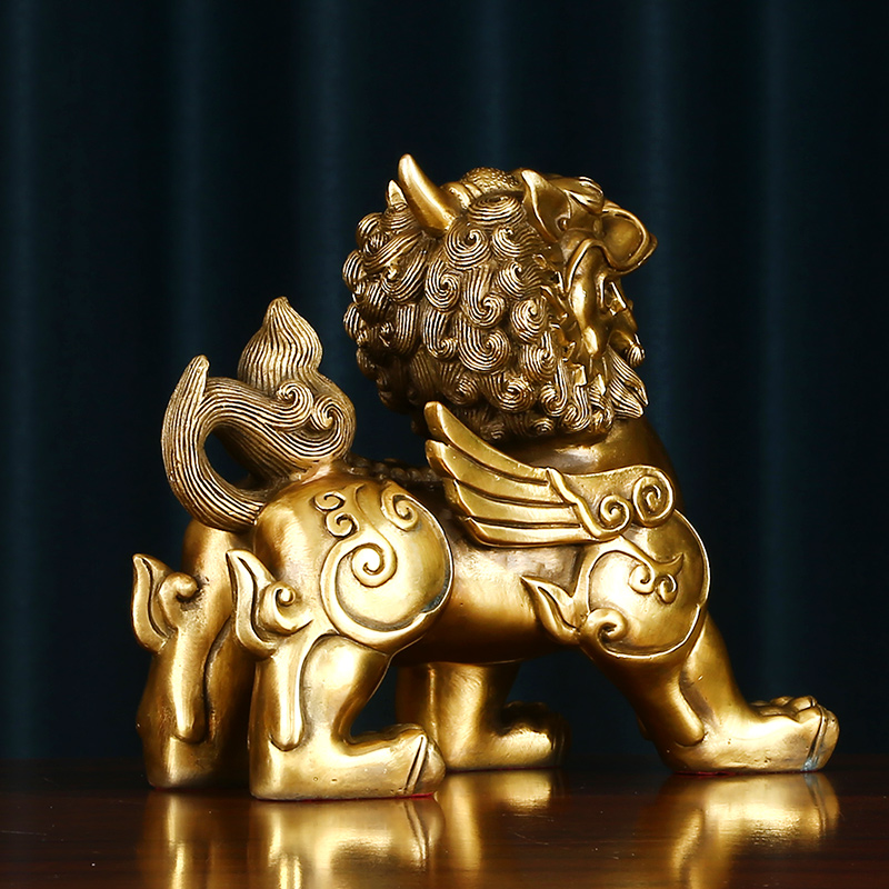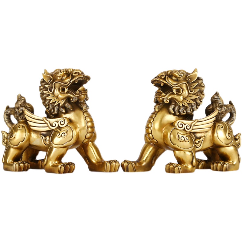 黄铜麒麟摆件一对铜工艺品中式家居办公室桌面公司开业乔迁礼品