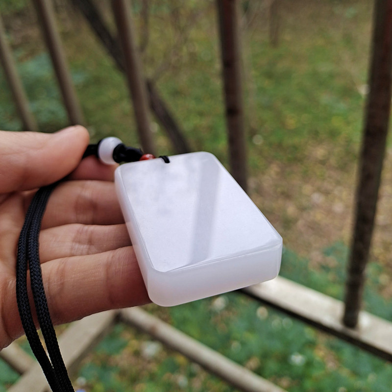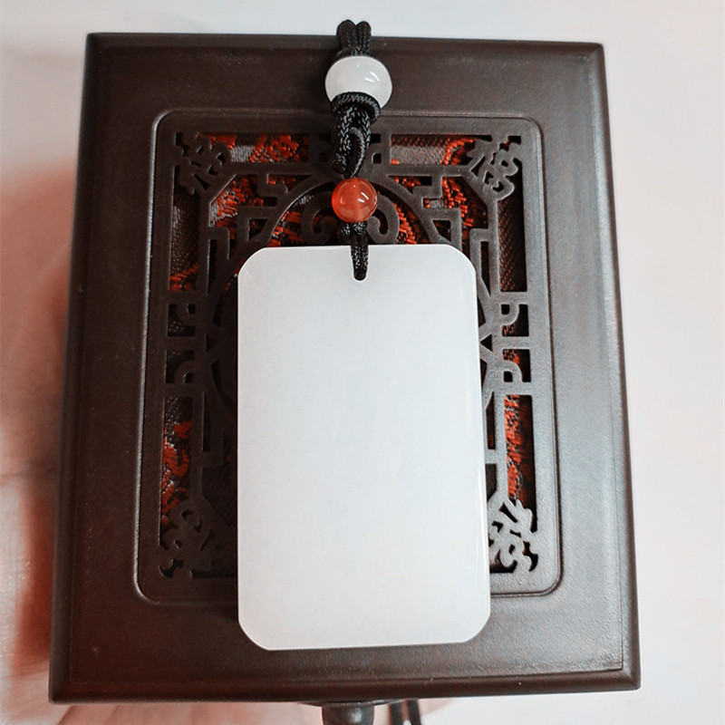 遇玉羊脂白玉吊坠平安无事牌玉佩男女款项链方形挂件送证书情侣对