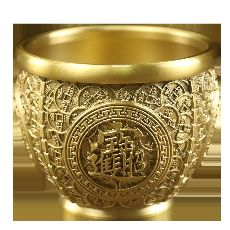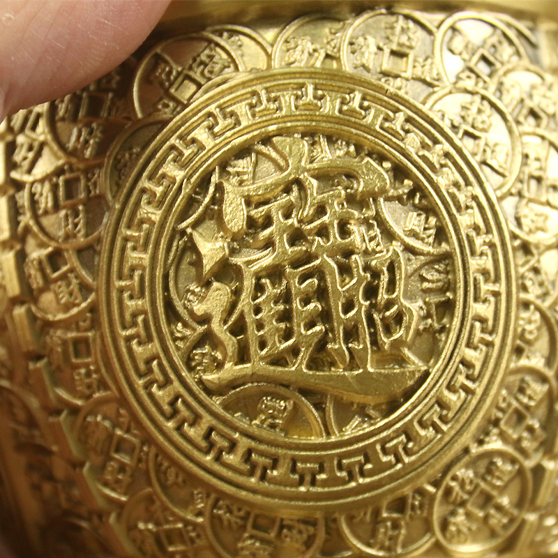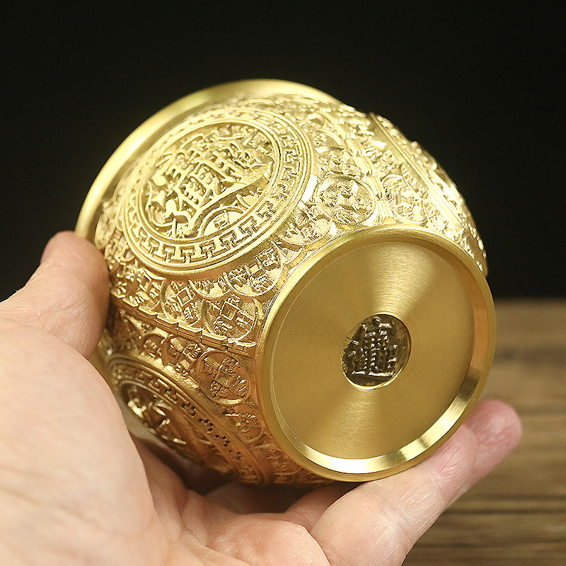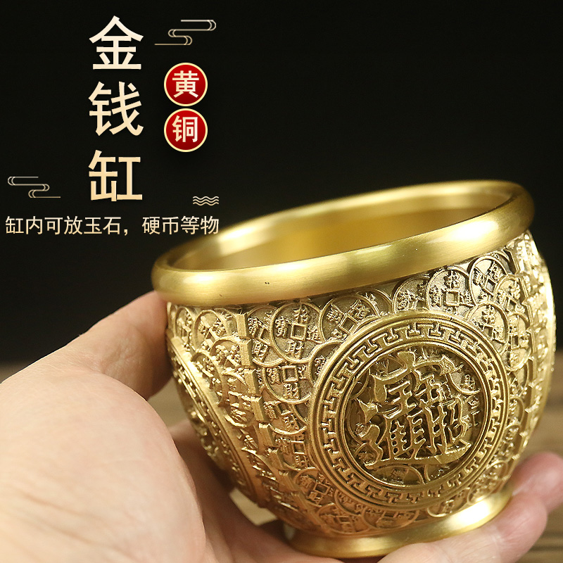 黄铜招财小铜缸摆件客厅中式聚宝盆家居装饰品办公室桌面摆设酒柜
