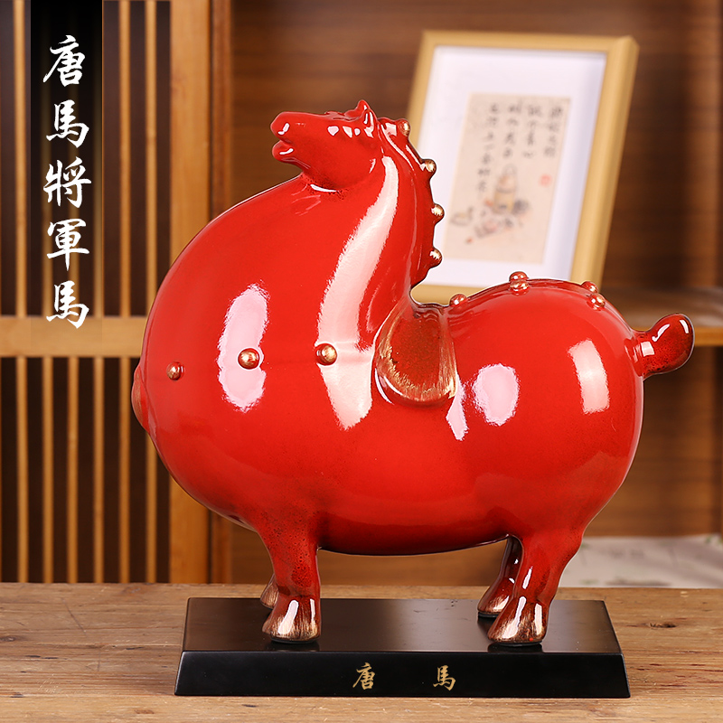 陶瓷绿马摆件中式家居创意招财唐马客厅办公室桌面装饰工艺品礼品