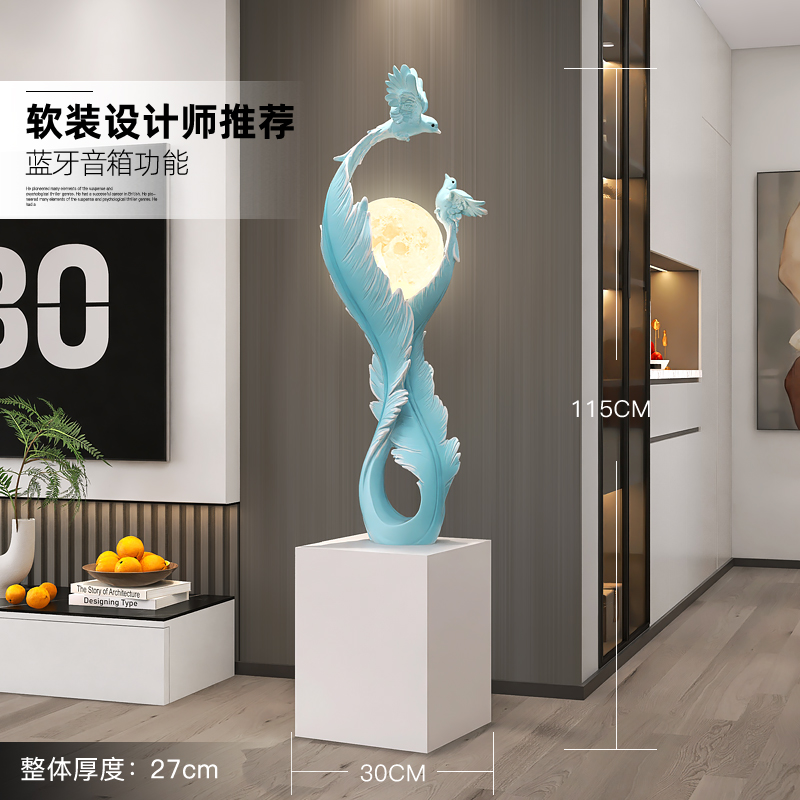 轻奢高级感大型羽毛客厅落地摆件电视柜沙发旁灯玄关装饰乔迁礼物