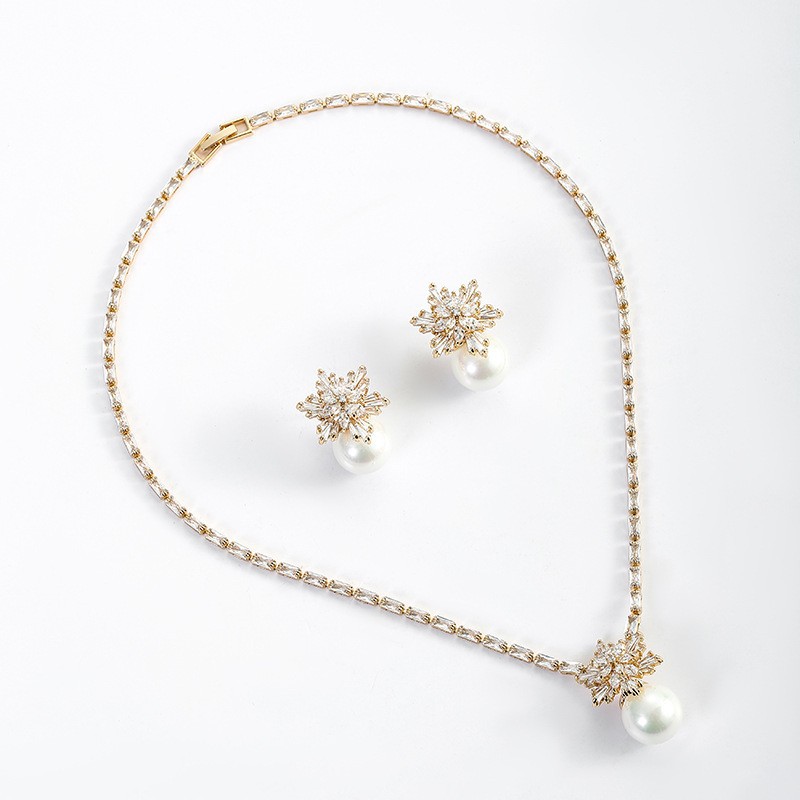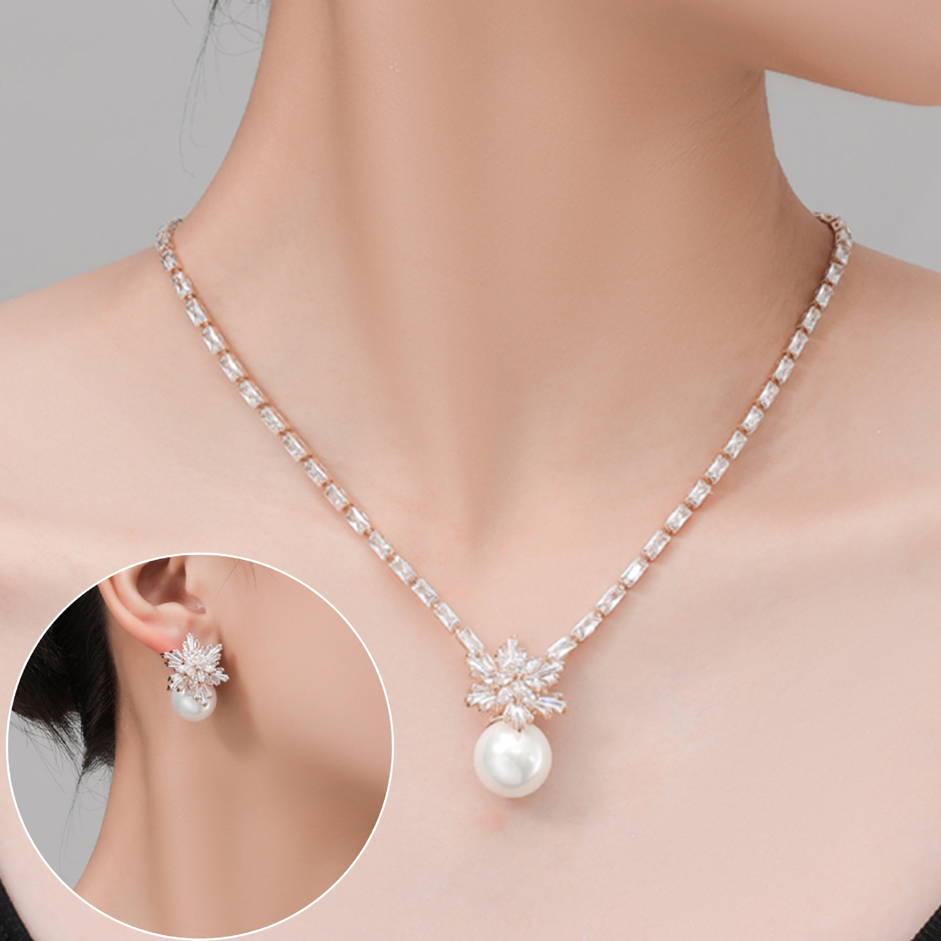 日本品质日韩高端珍珠锆石雪花项链耳饰套装韩版名媛气质冷淡风时