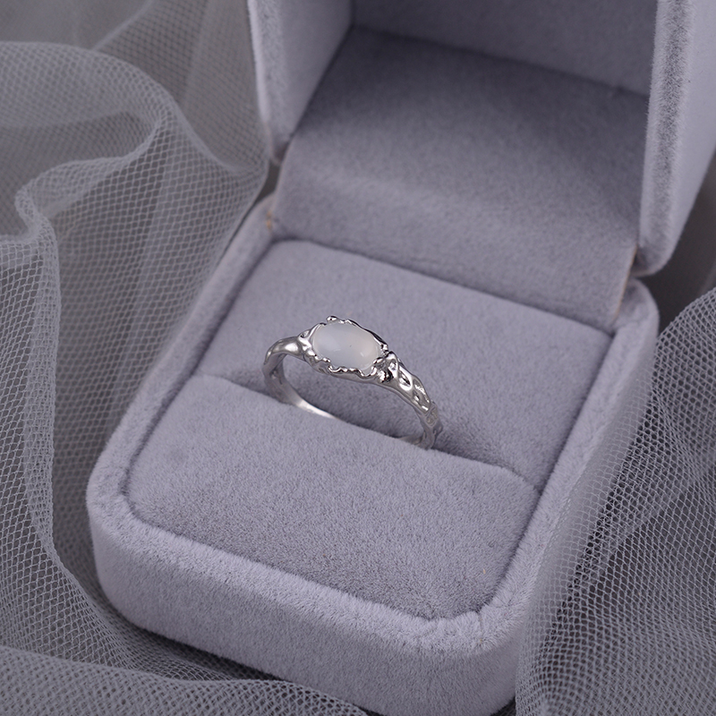 925纯银白玛瑙戒指女小众设计高级轻奢开口食指戒可调节ins潮刻字