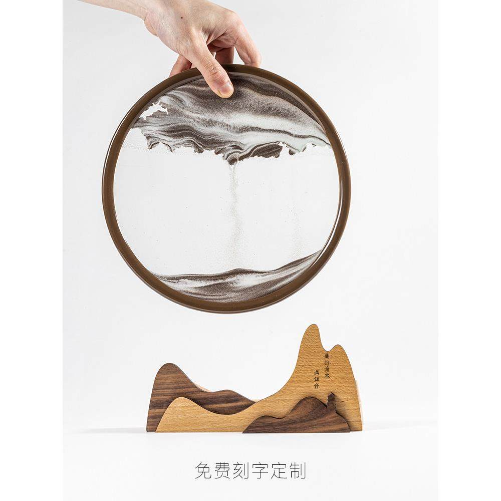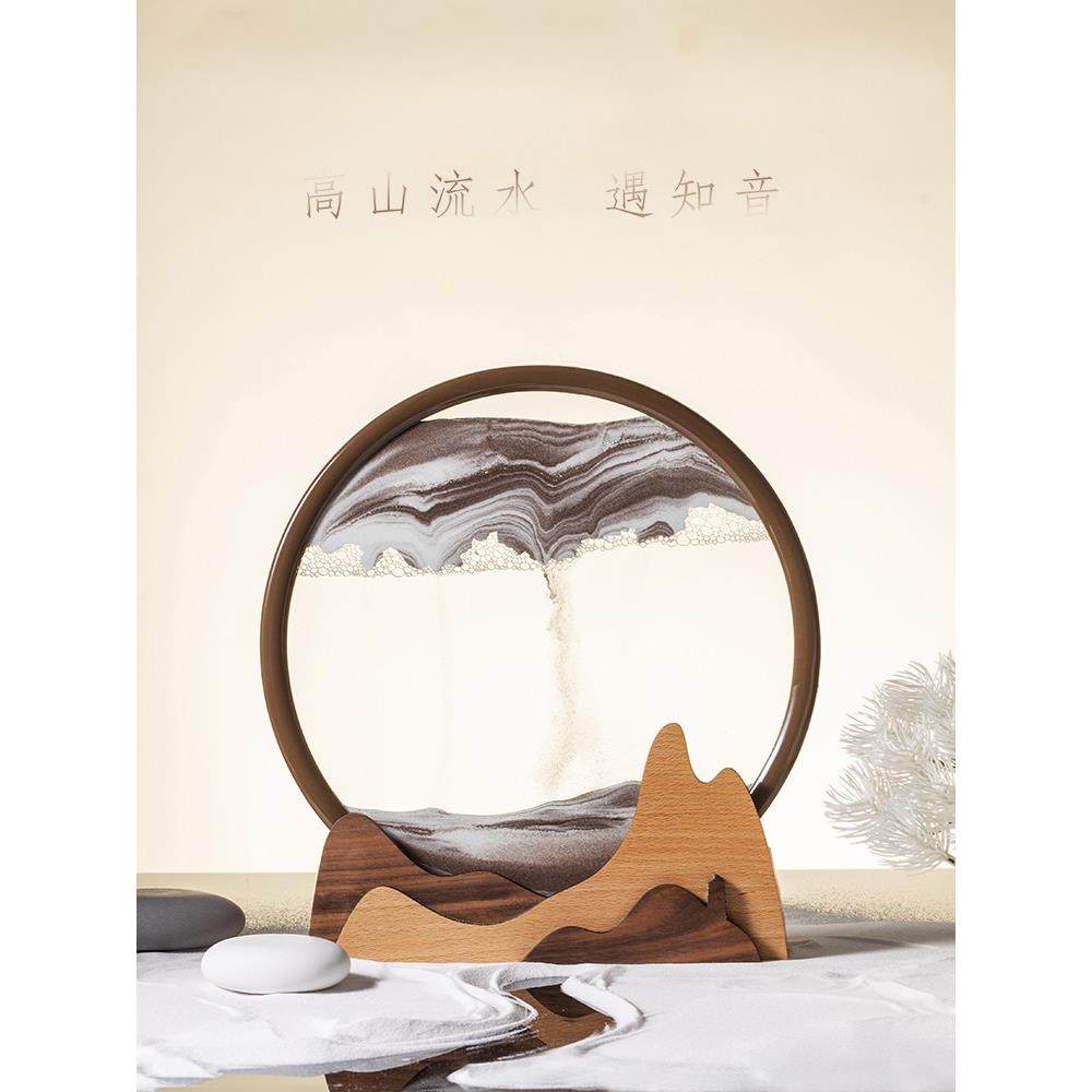 马鹿创意流沙画高山流水沙漏客厅办公室摆件新中式装饰品定制礼物