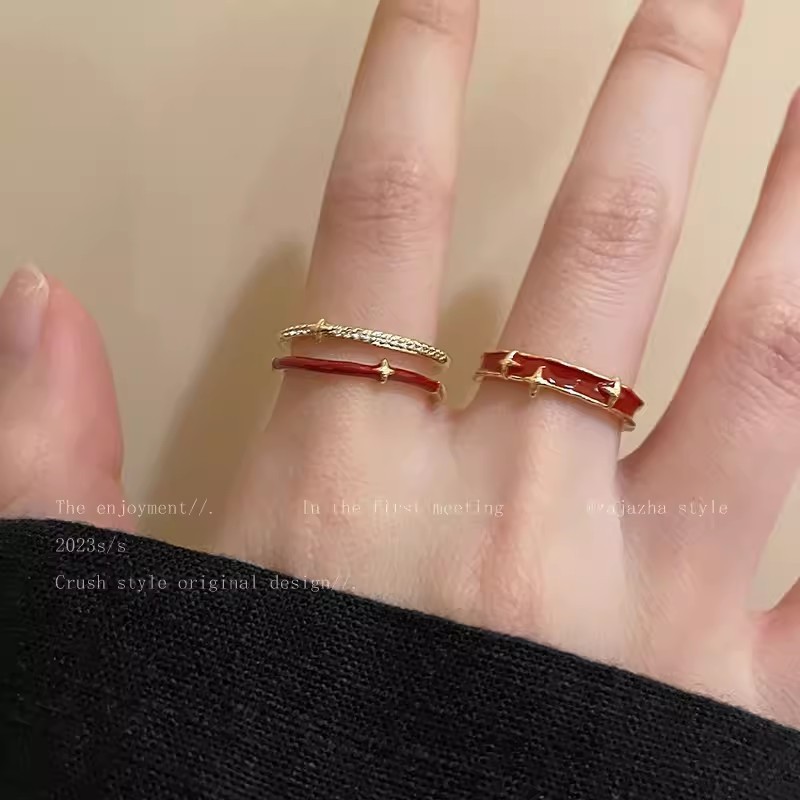 安可拉红色滴釉开口戒指女轻奢小众高级感食指戒复古显白叠戴指环
