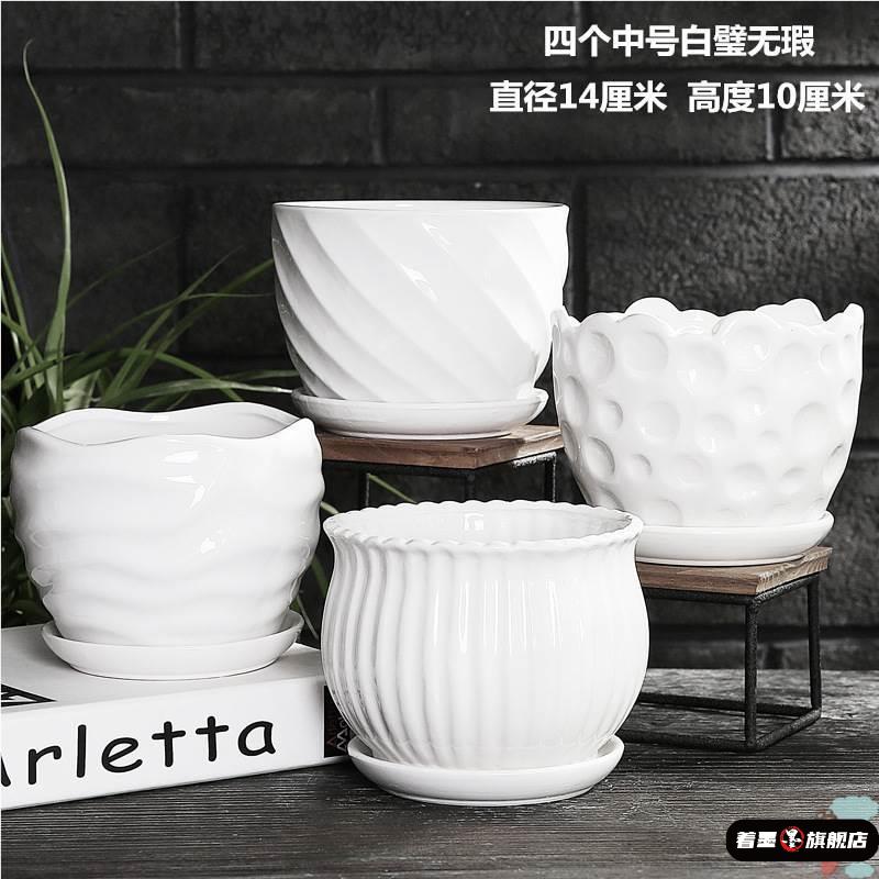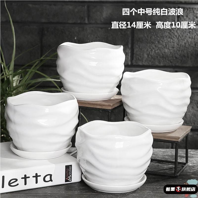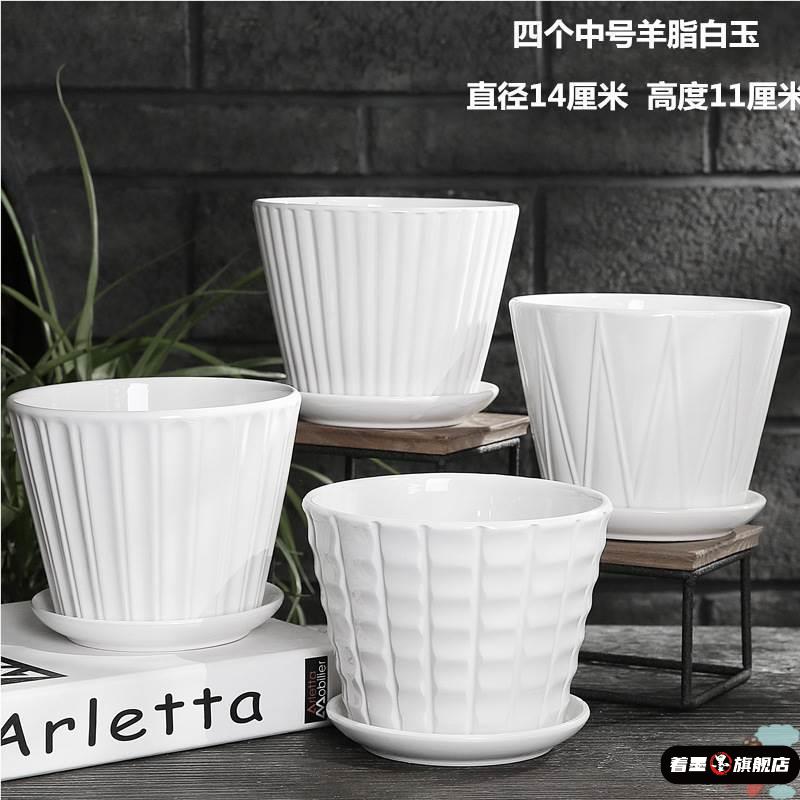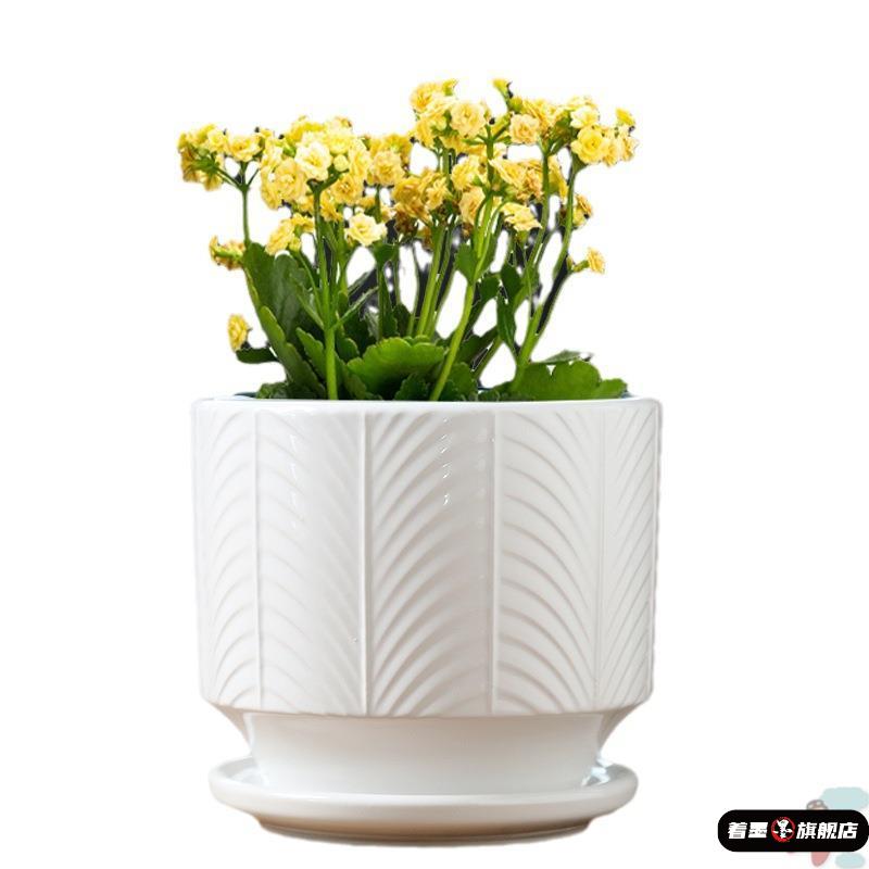 花盆陶瓷创意大号带托盘家用绿萝多肉花Q盆白色植物小花盆