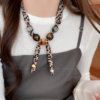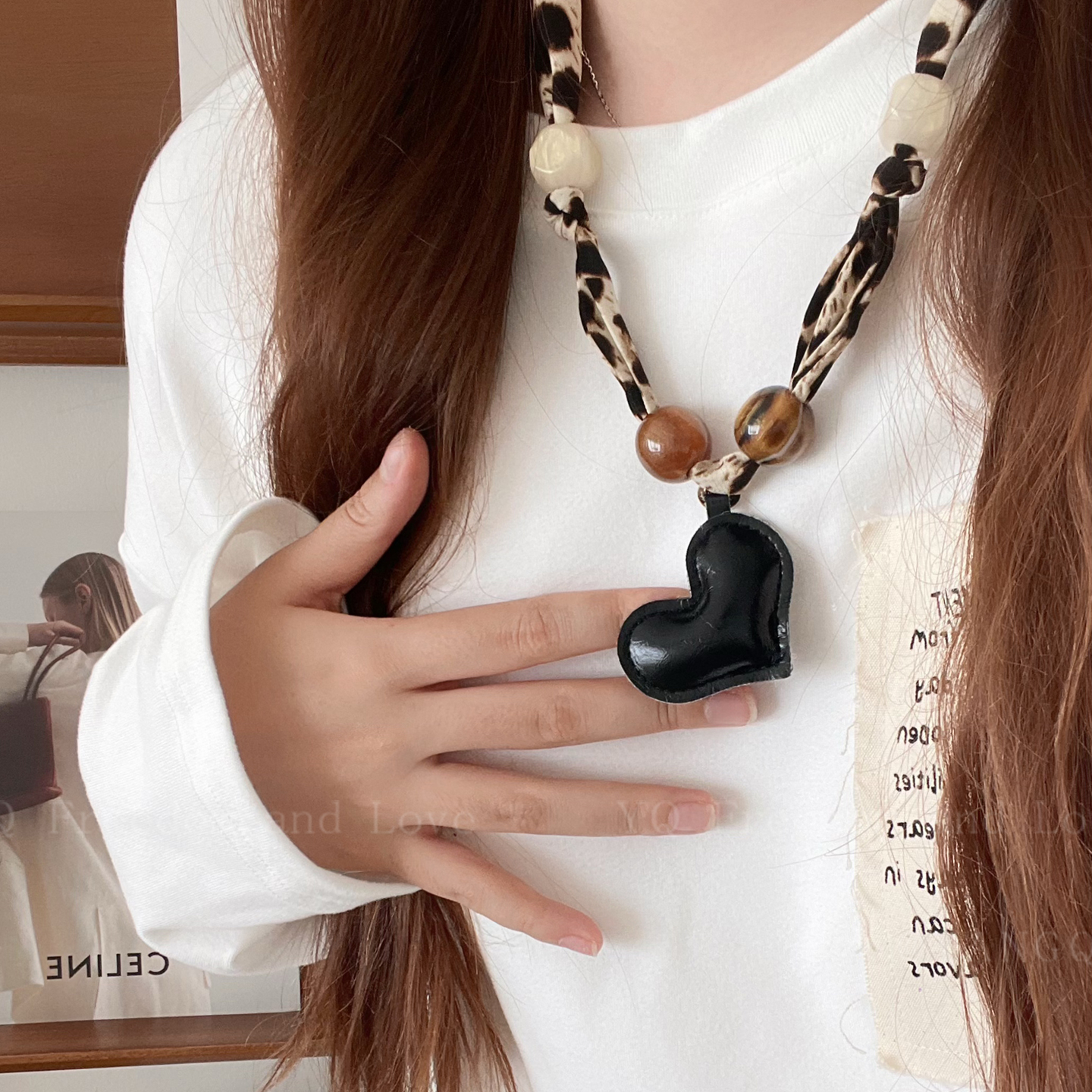 原创!咖色美拉德豹纹爱心丝巾项链女小众复古高级毛衣链串珠配饰