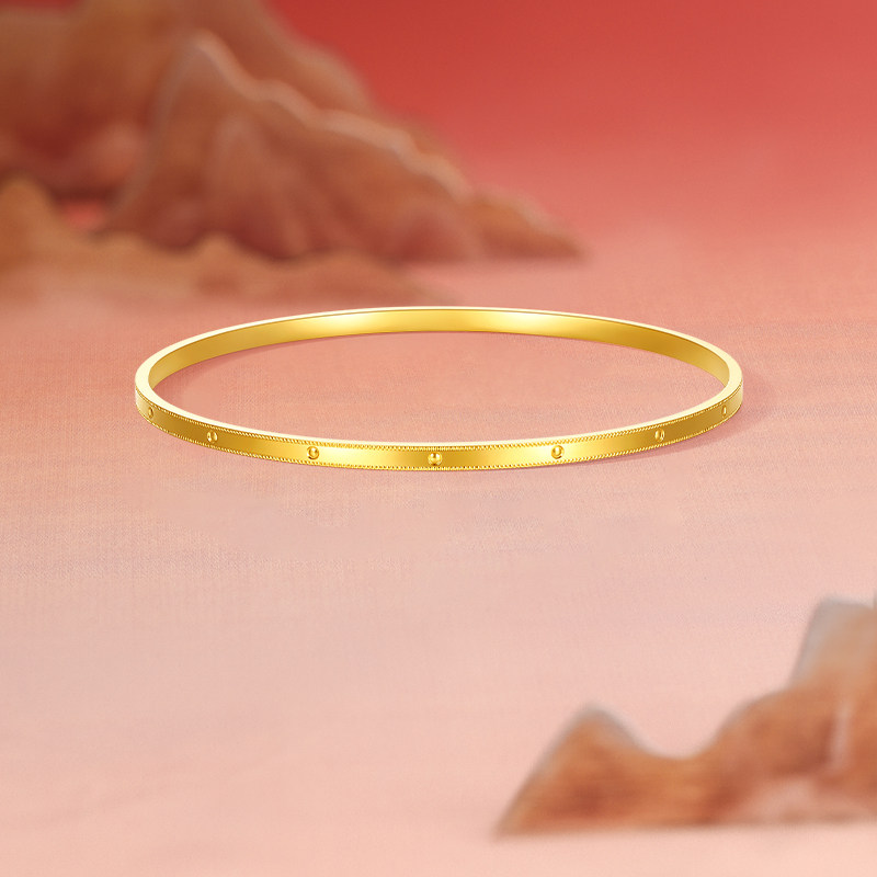 周六福黄金5G计价足金首饰光面钉珠简约百搭手镯圣诞礼物