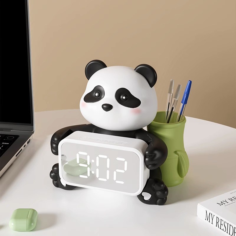 熊猫笔筒时钟摆件客厅玄关电视柜桌面电子钟表装饰品高级实用礼物