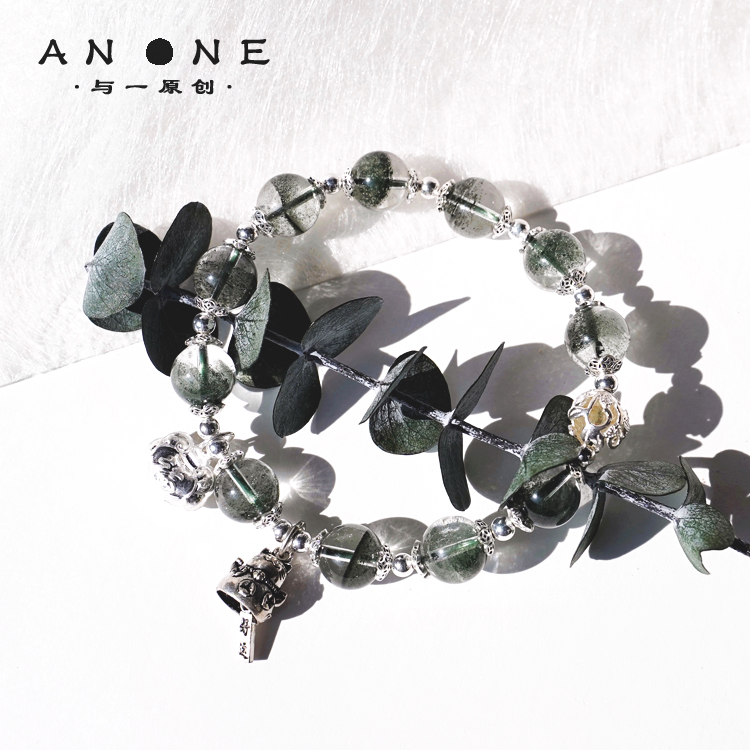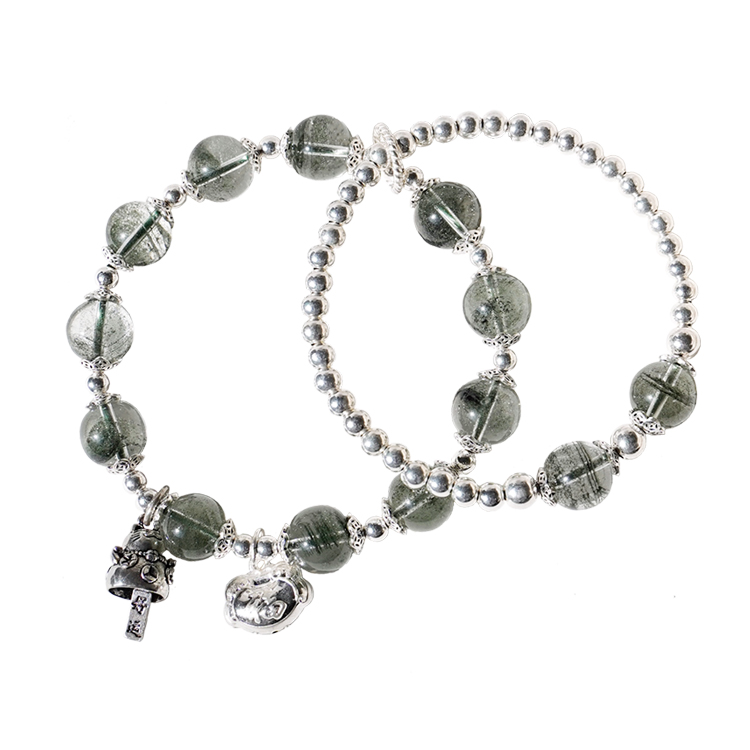 绿幽灵手链 天然水晶双圈手串绿水晶原石聚宝盆千层女款 纯银正品