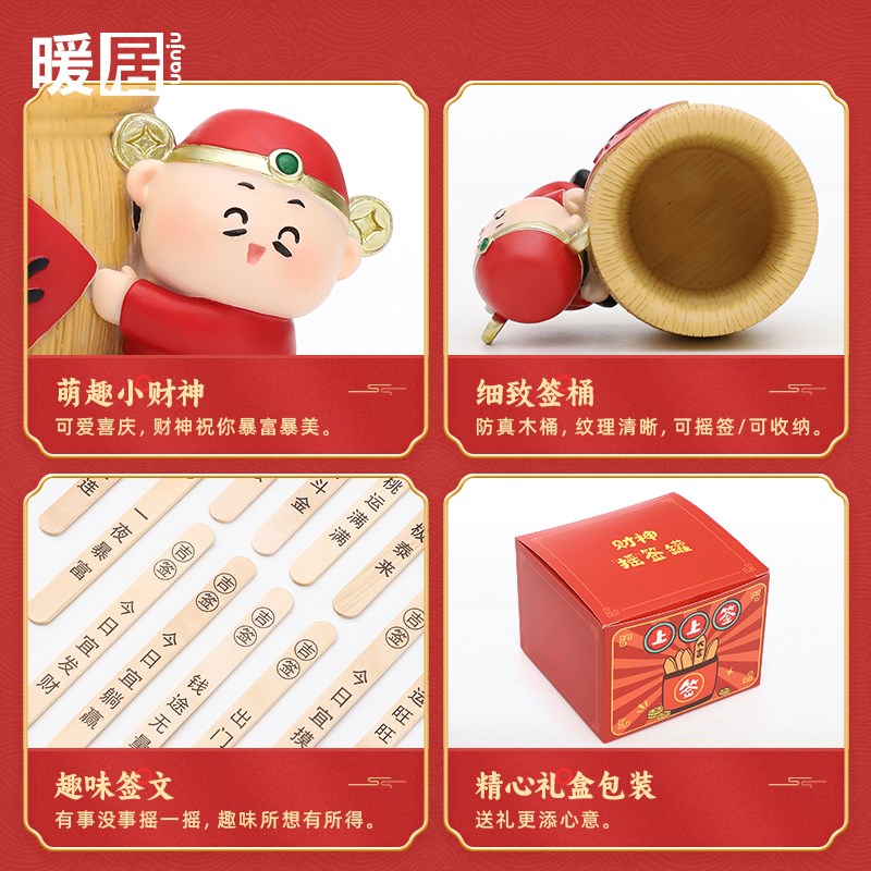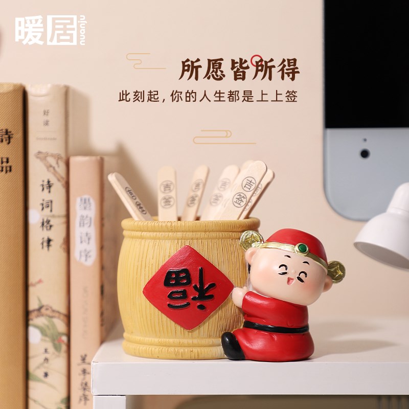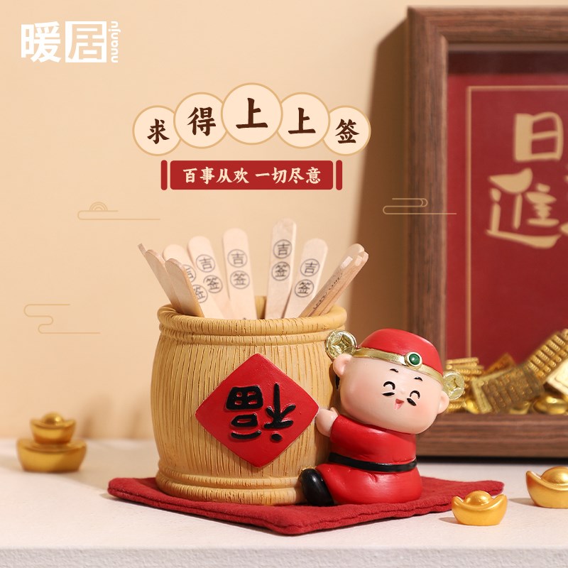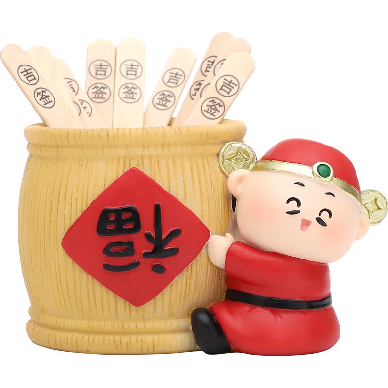 国潮打工人财神摇签罐摆件创意办公室桌面求签装饰摆设送礼好物