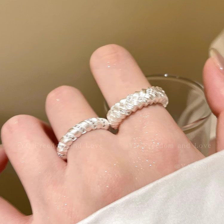 素圈新款锆石拉丝戒指女小众轻奢食指戒高级设计感对戒情侣指环潮