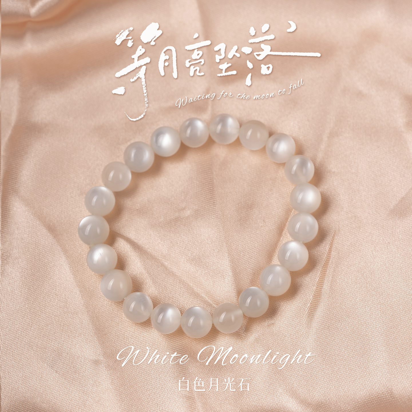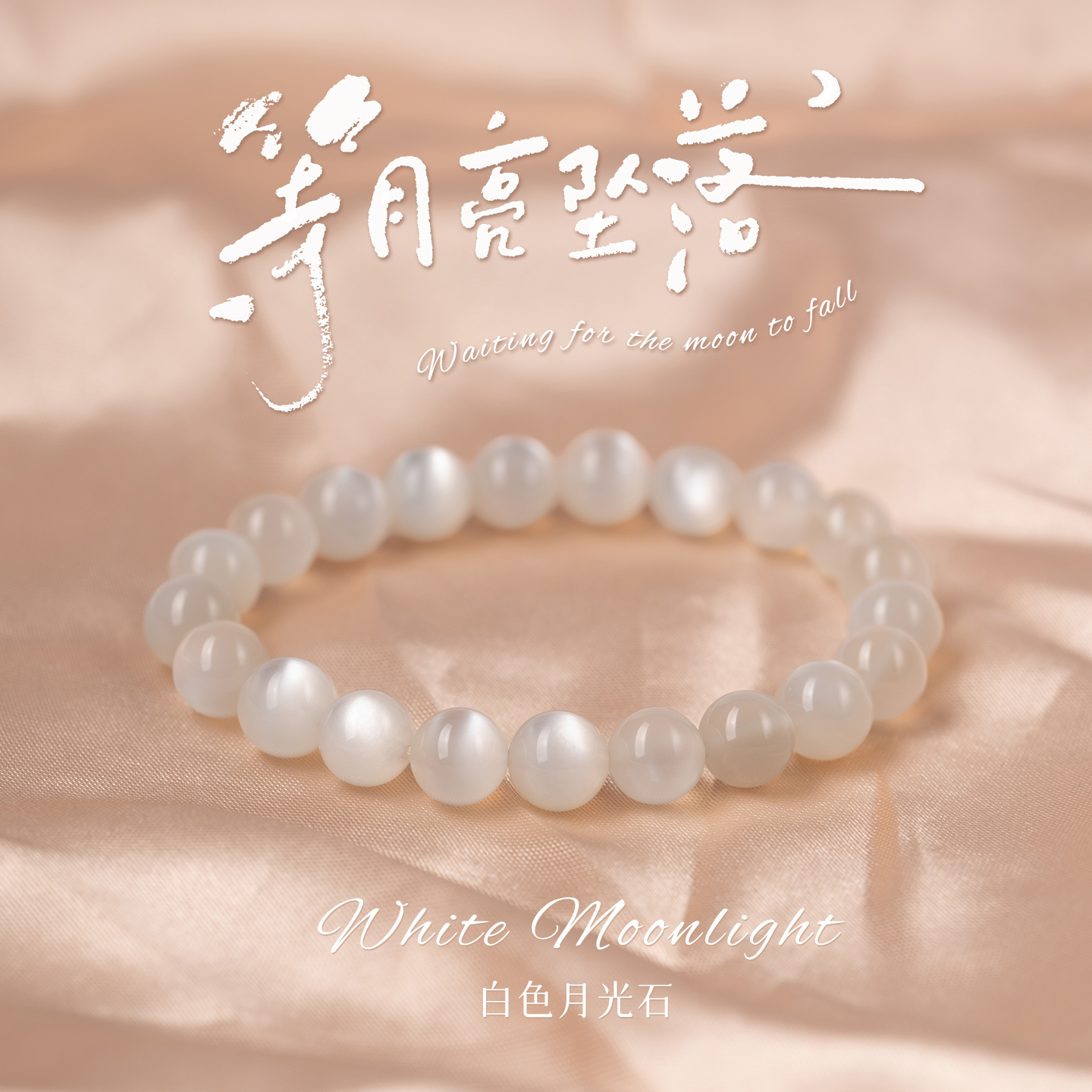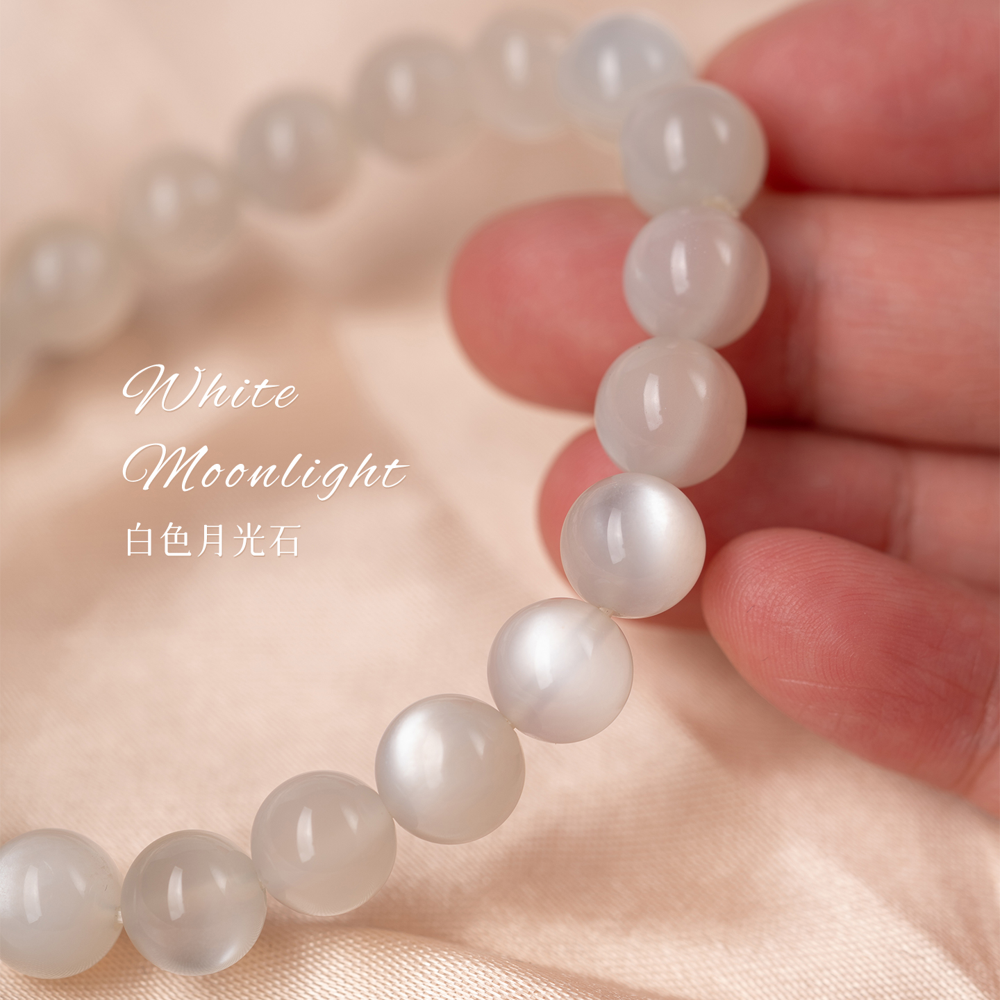 净莲梵尘 高品质白色月光石单圈手串 温柔 气质 治愈定制手链 ZF