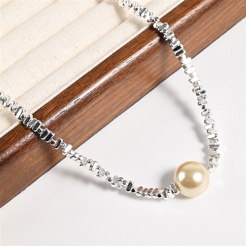 速发法式方形链淡水珍珠项链 小众时尚设计款重工立体几何颈饰项