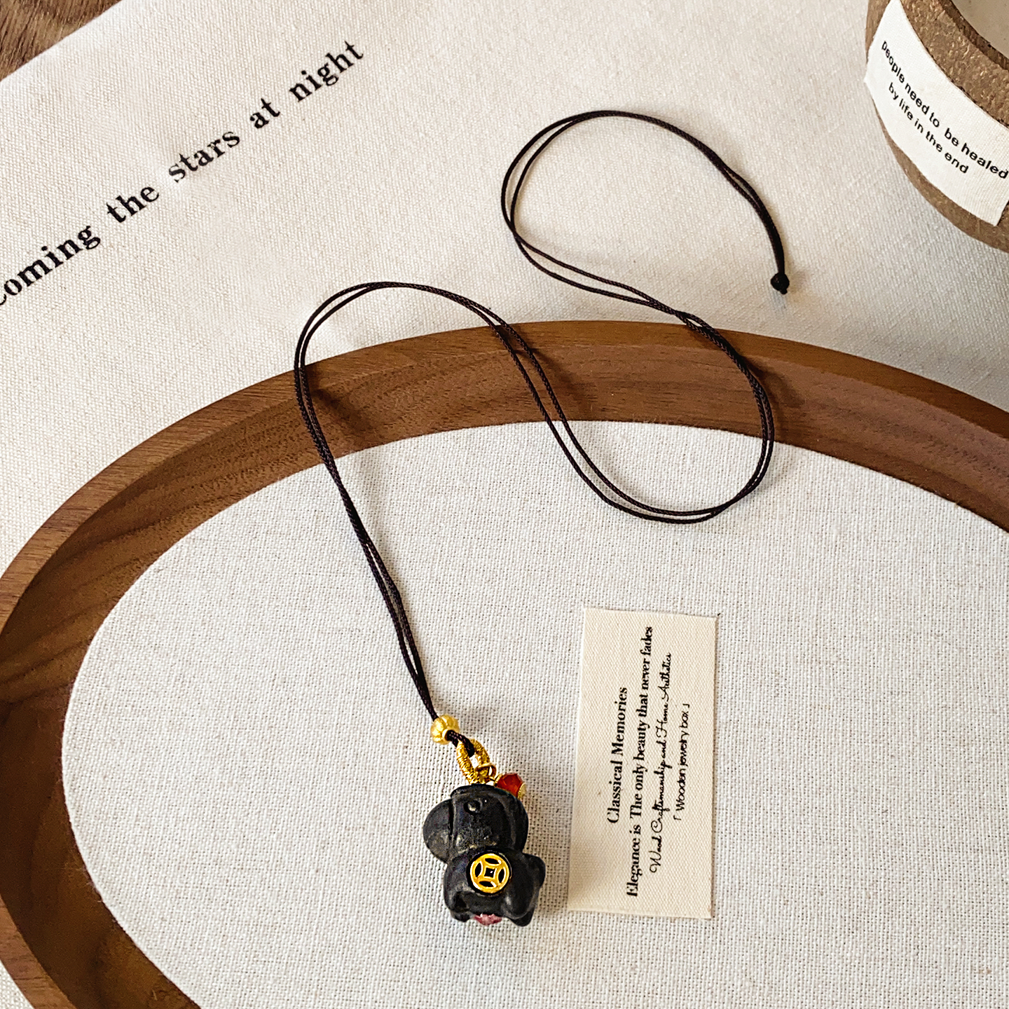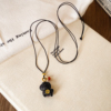 黑色铜钱币小马吊坠长款项链女高级感轻奢小众毛衣链2025新款饰品