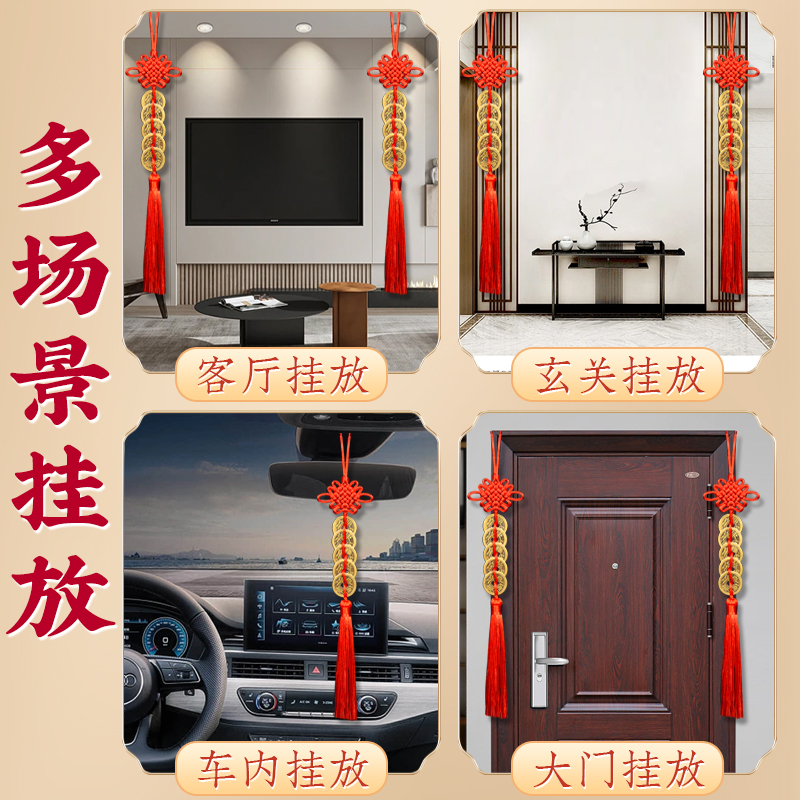 五帝钱挂件纯黄铜门对门吉祥真品铜五吊钱古币铜钱中国结铜钱挂件