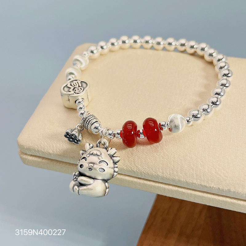 s925纯银手链女生小众时尚龙年本命年串珠手环个性百搭年轻款手饰