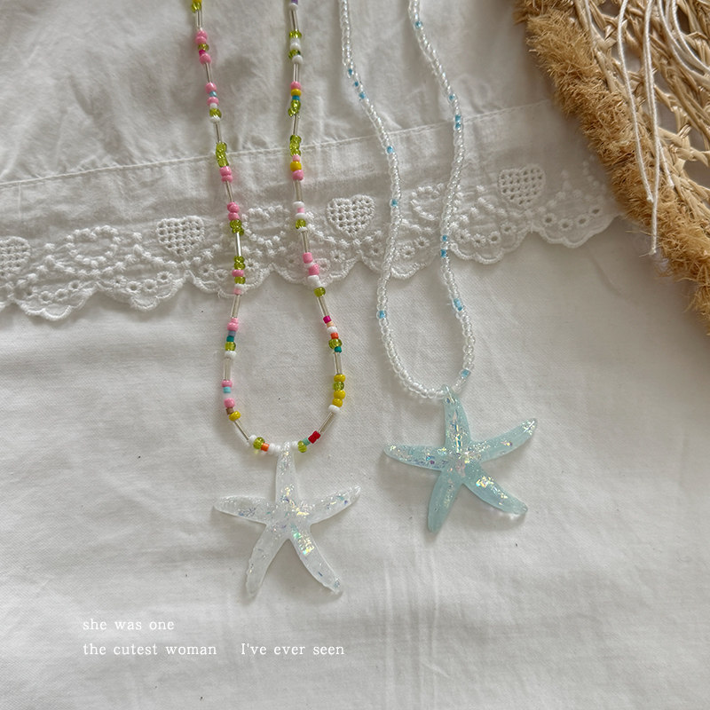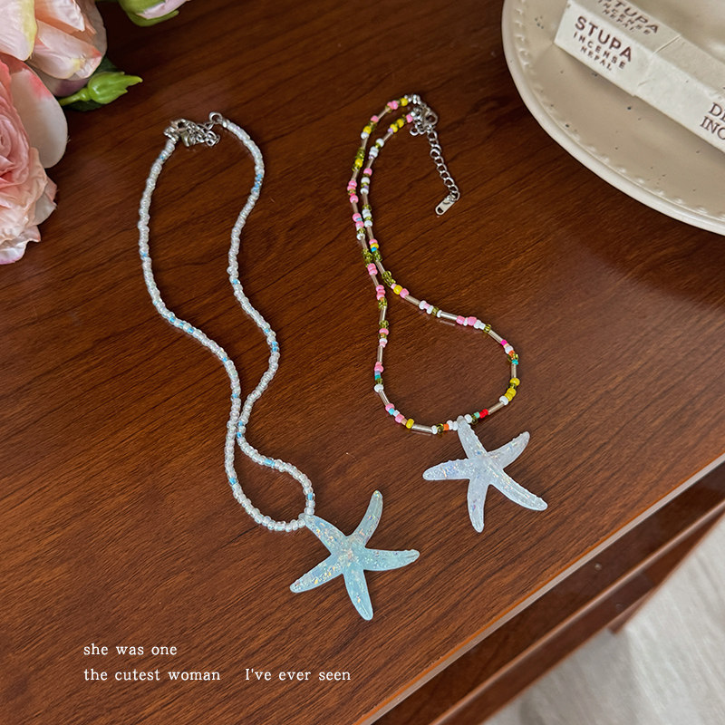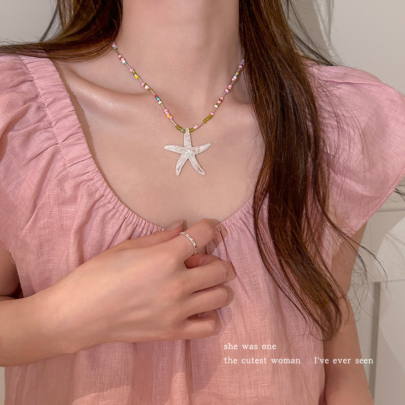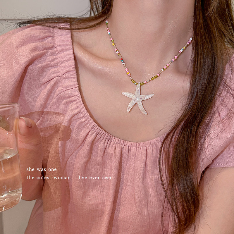 夏日跳舞海星多巴胺串珠项链女海边度假风锁骨链配饰甜酷颈链吊坠