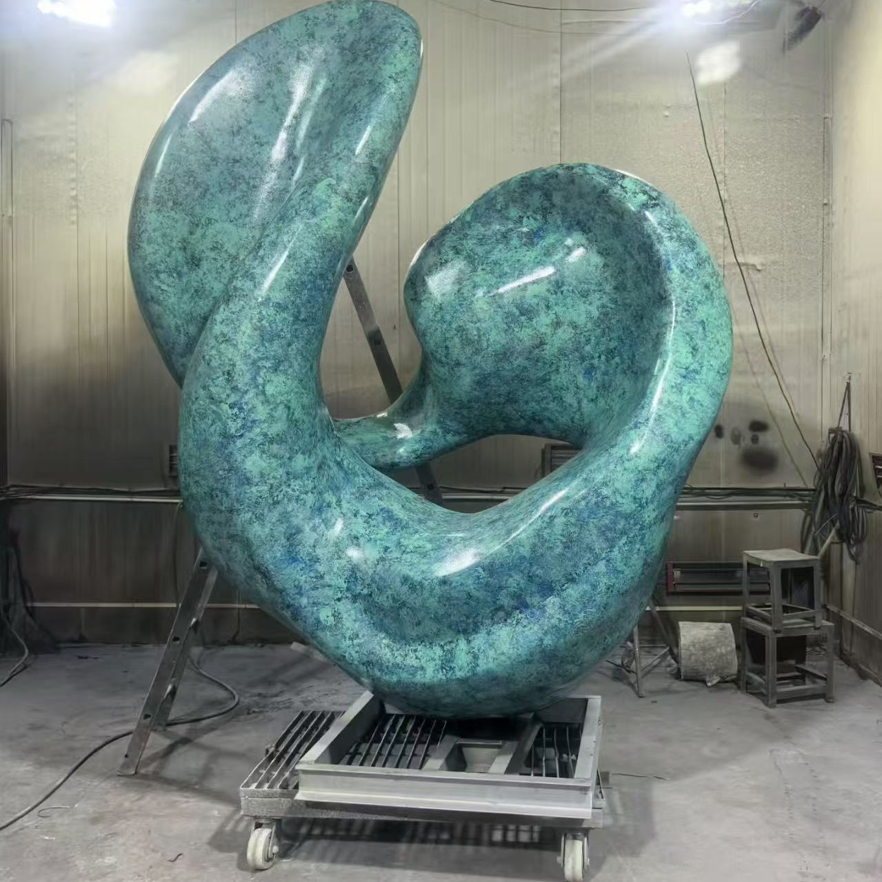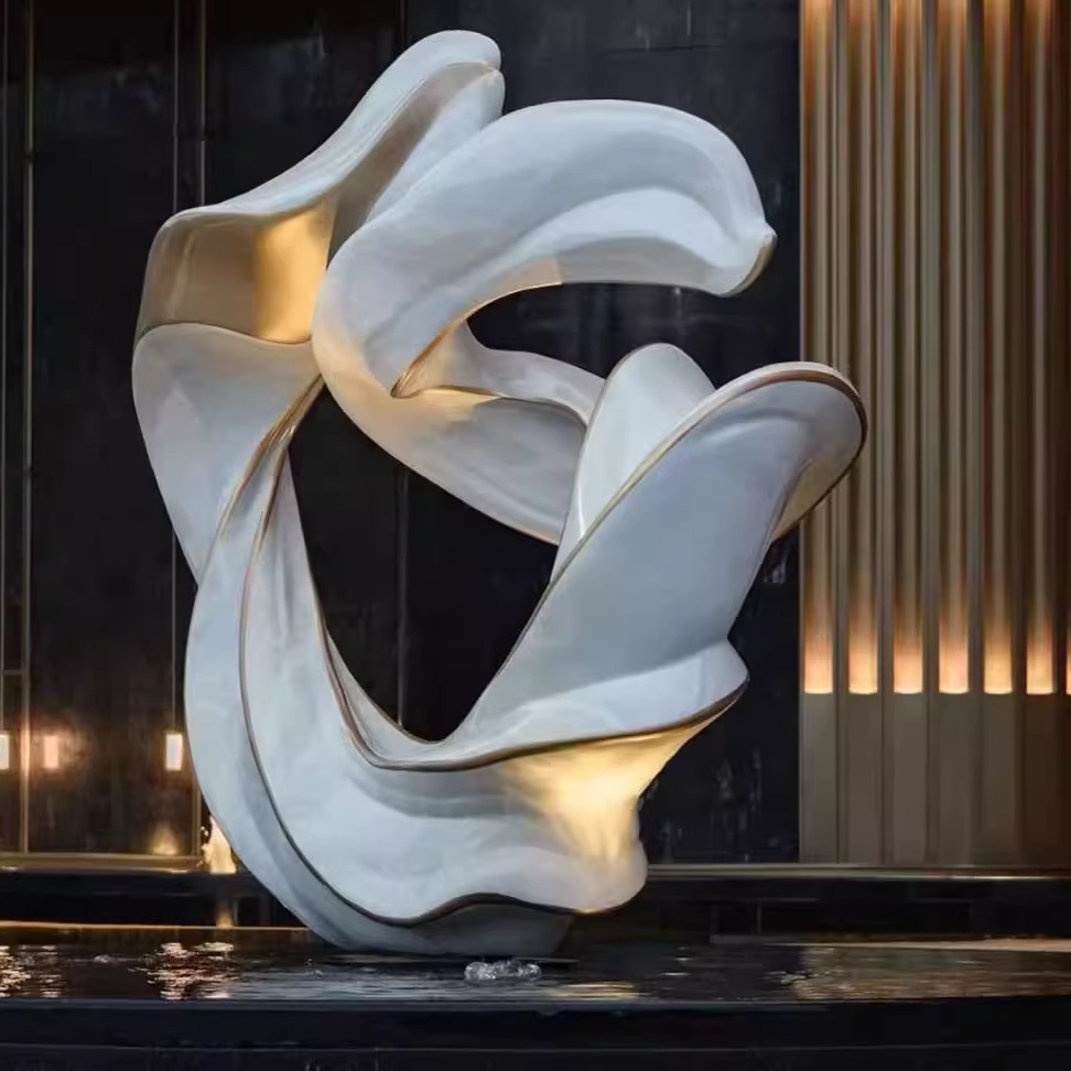 大型不锈钢定制雕塑厂家广场公园校园抽象景观廊架浪花圆环鹿摆件