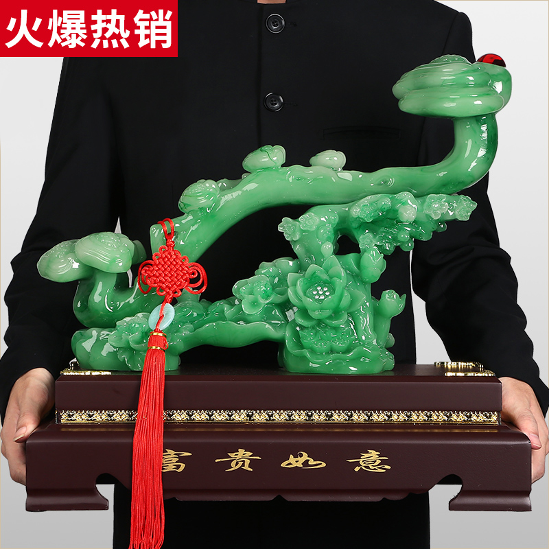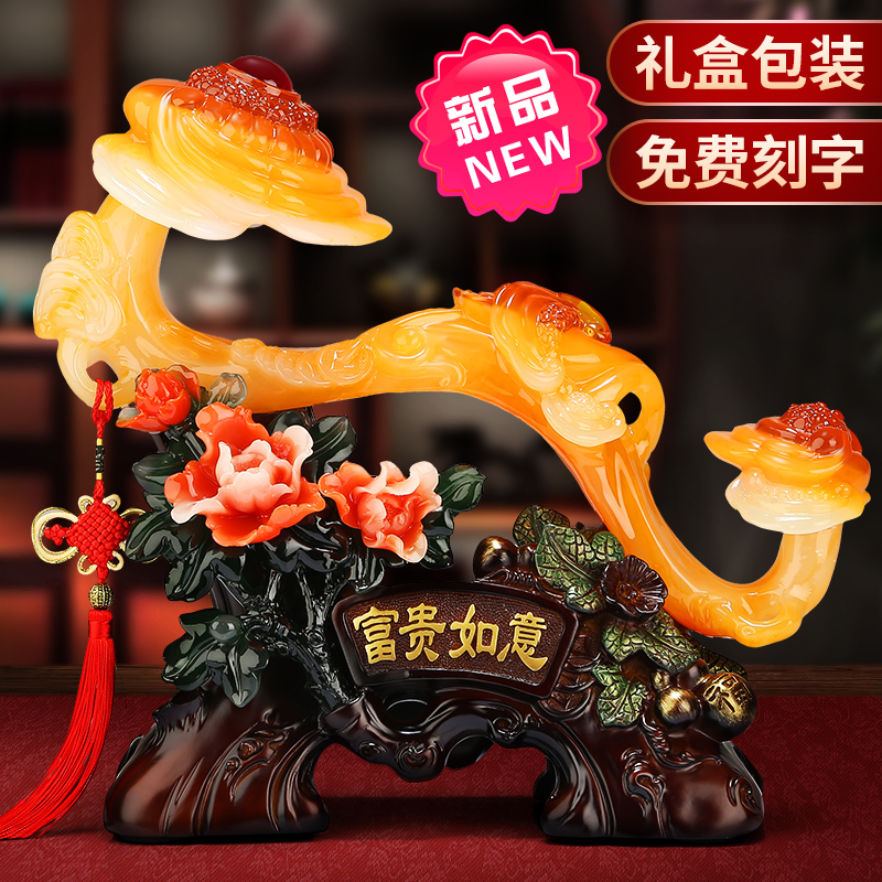 吉善堂 树脂仿玉如意摆件 新中式客厅酒柜乔迁礼物新房装饰工艺品