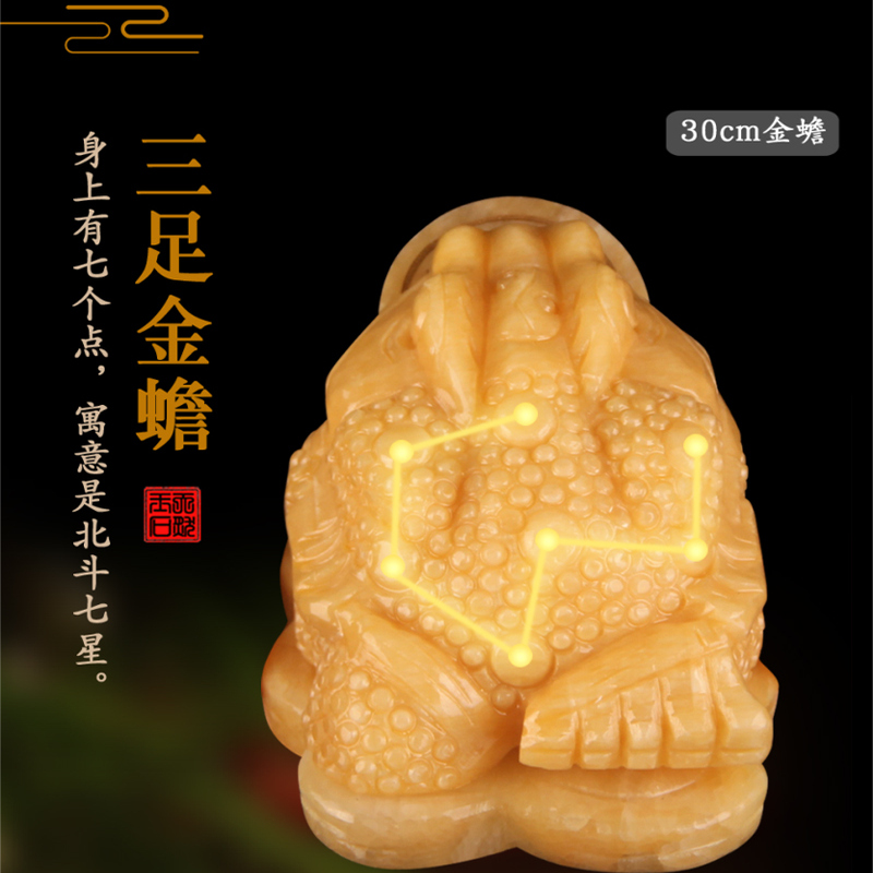 天然玉石金蟾玉雕三足蟾蜍三脚金蝉装饰品店铺开业米黄玉摆件