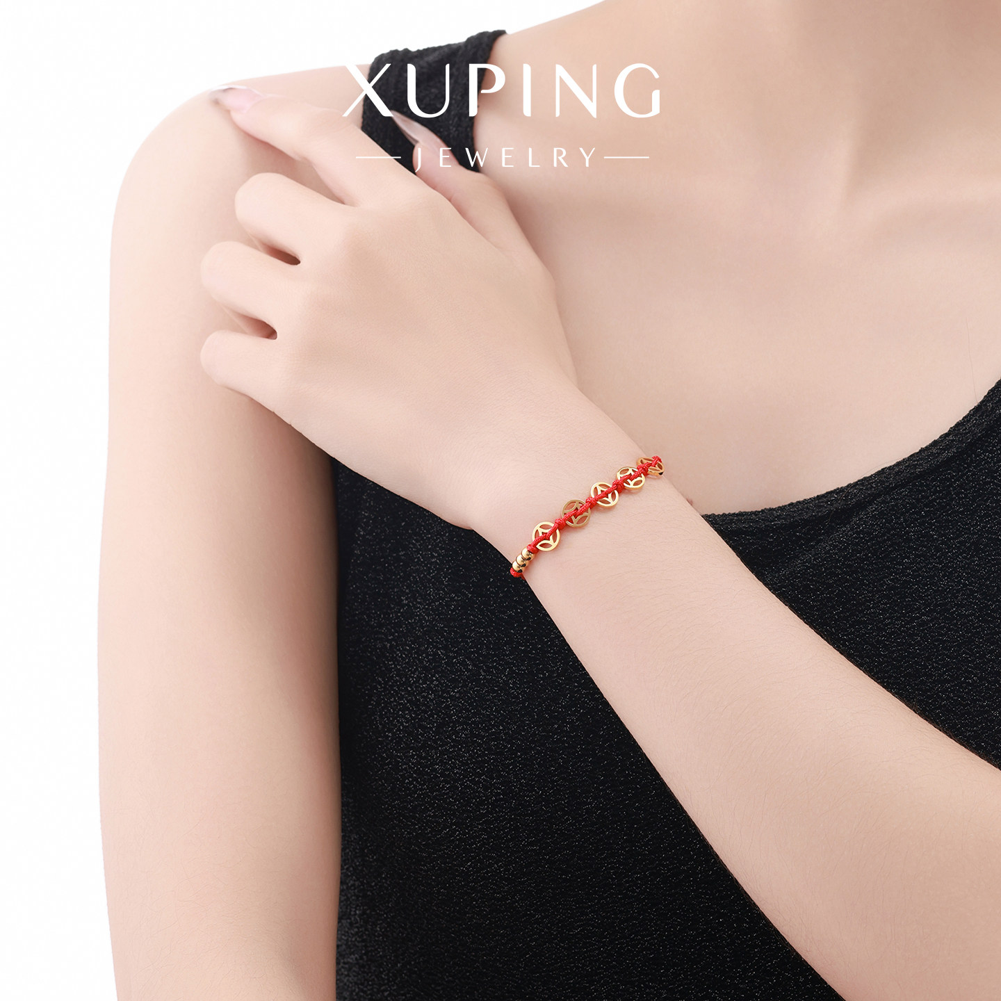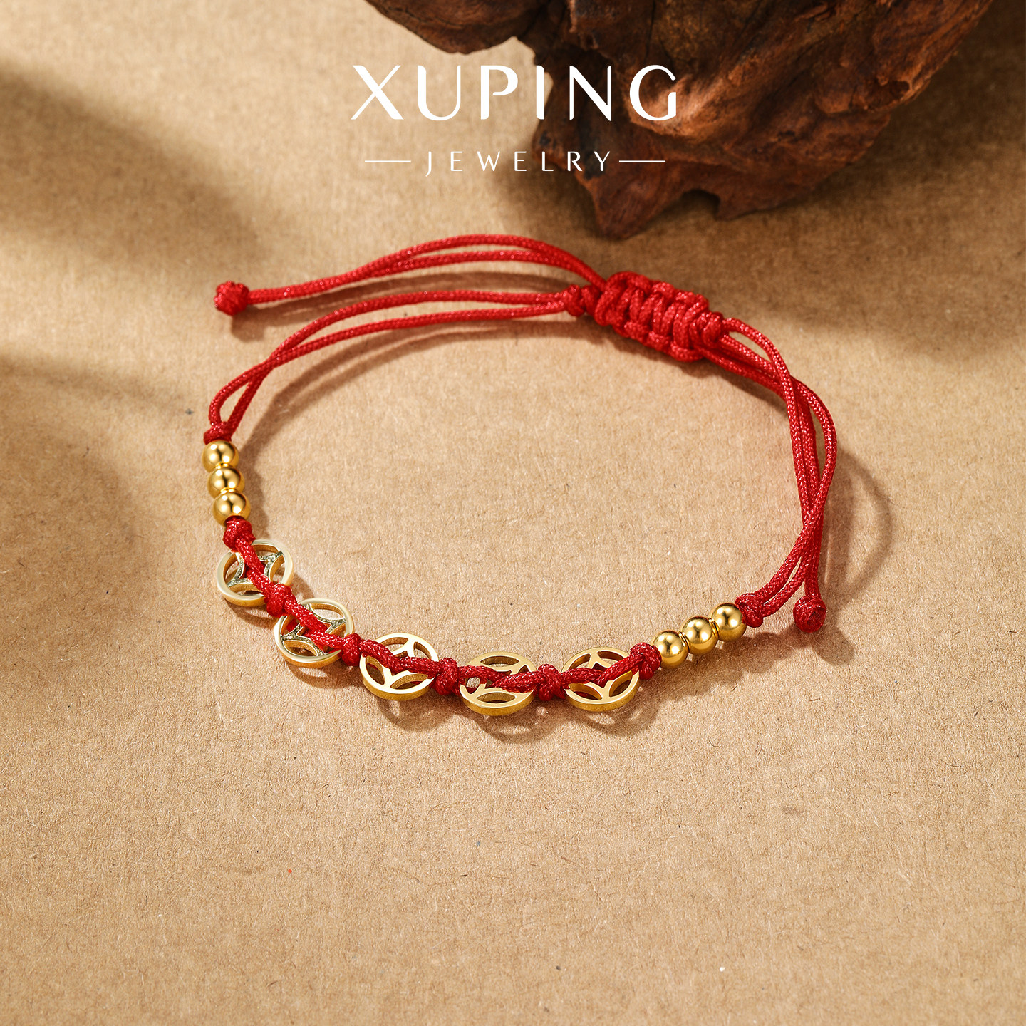 旭平金色铜钱金币编织红绳手链红色抽拉手绳复古轻奢气质手饰