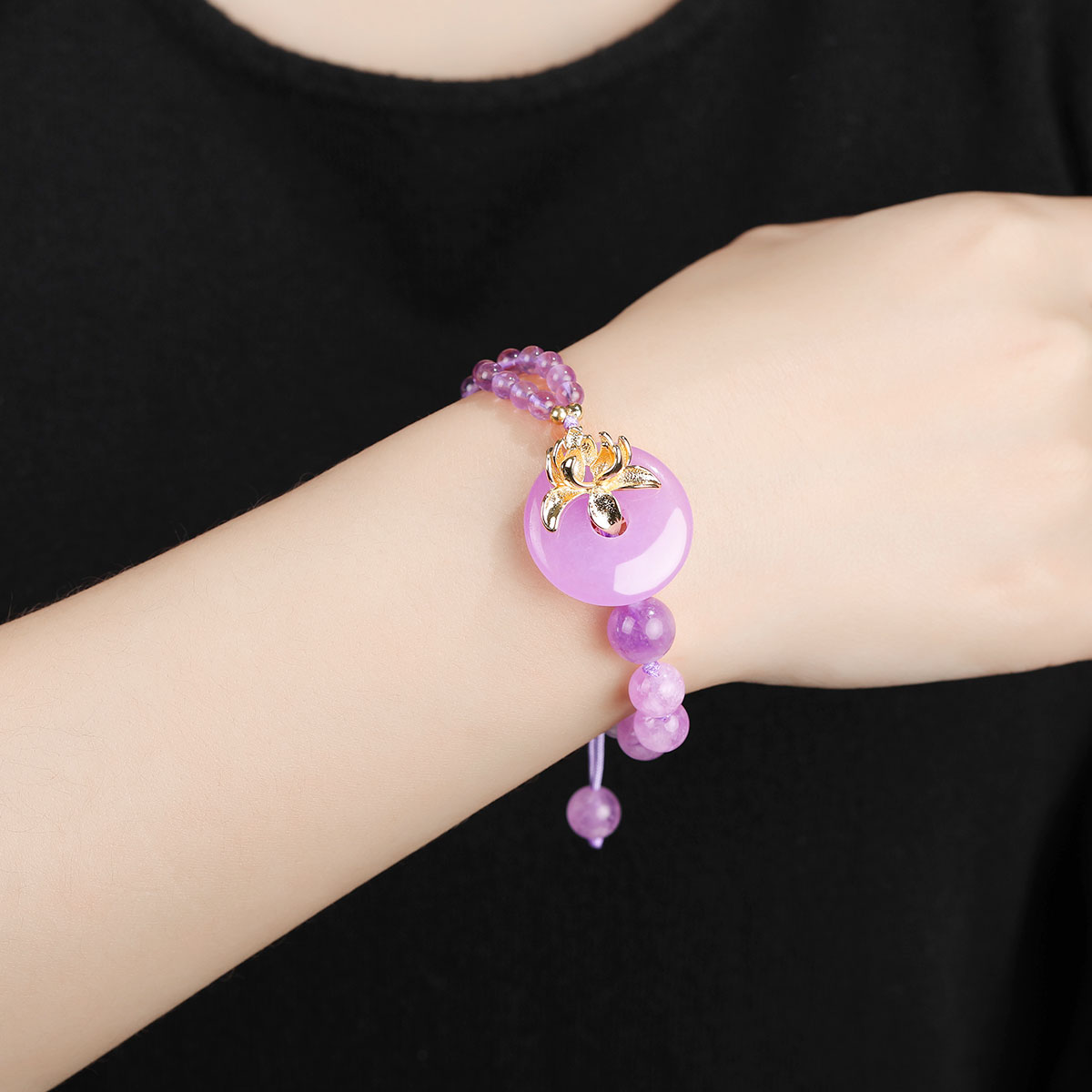民族风天然紫水晶手链纯银防过敏手串可调节平安扣手饰女2025新品