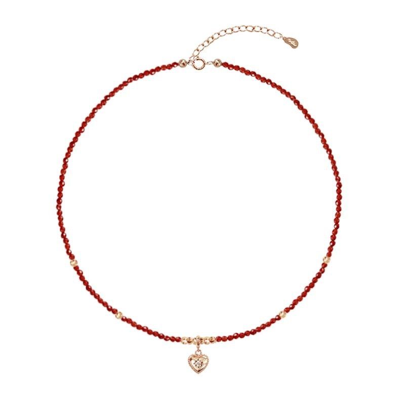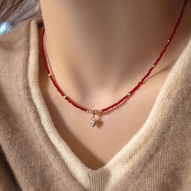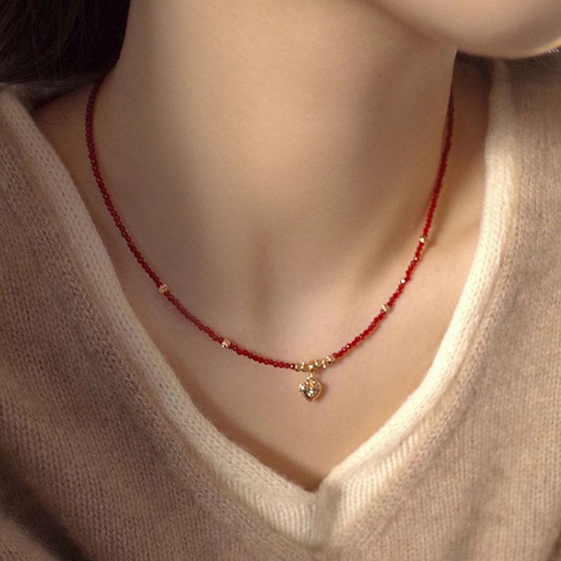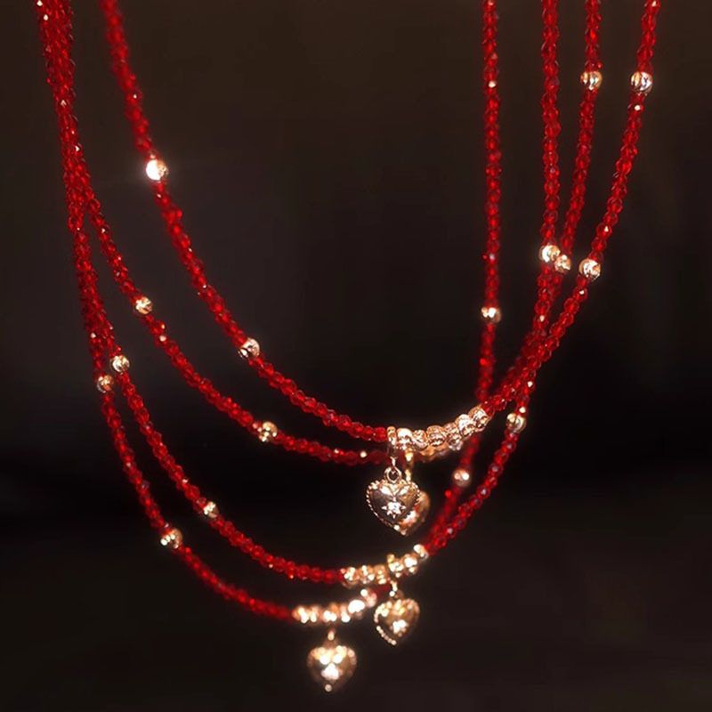 新中式红水晶芒星爱心项链不掉色女小众高级感显白串珠叠戴毛衣链