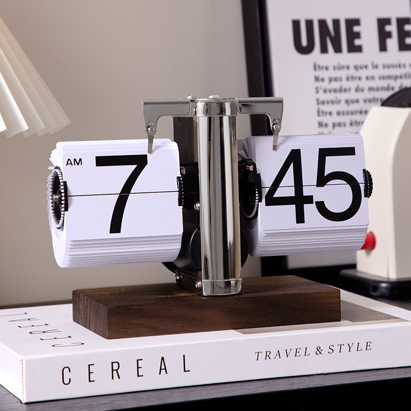 创意自动翻页时钟复古客厅摆件座钟现代简约机械数字钟表摆台装饰