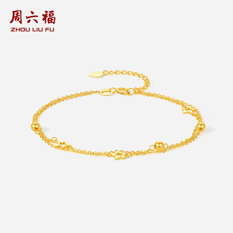 周六福黄18K金手链女多彩金AU750星星手饰甜美圣诞礼物送女友