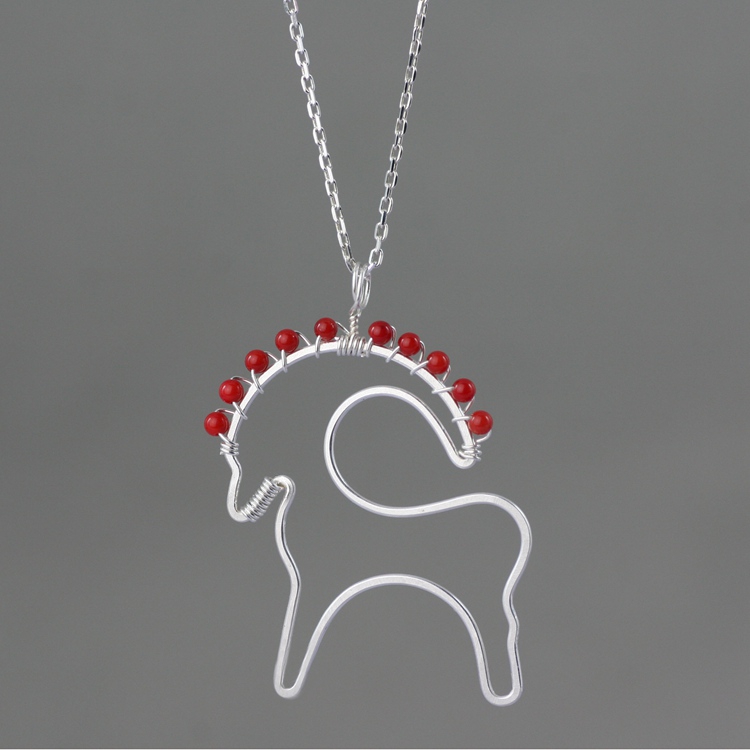 素元 羊年吊坠 纯银项链女短款颈链锁骨链本命年红色项链订制礼物